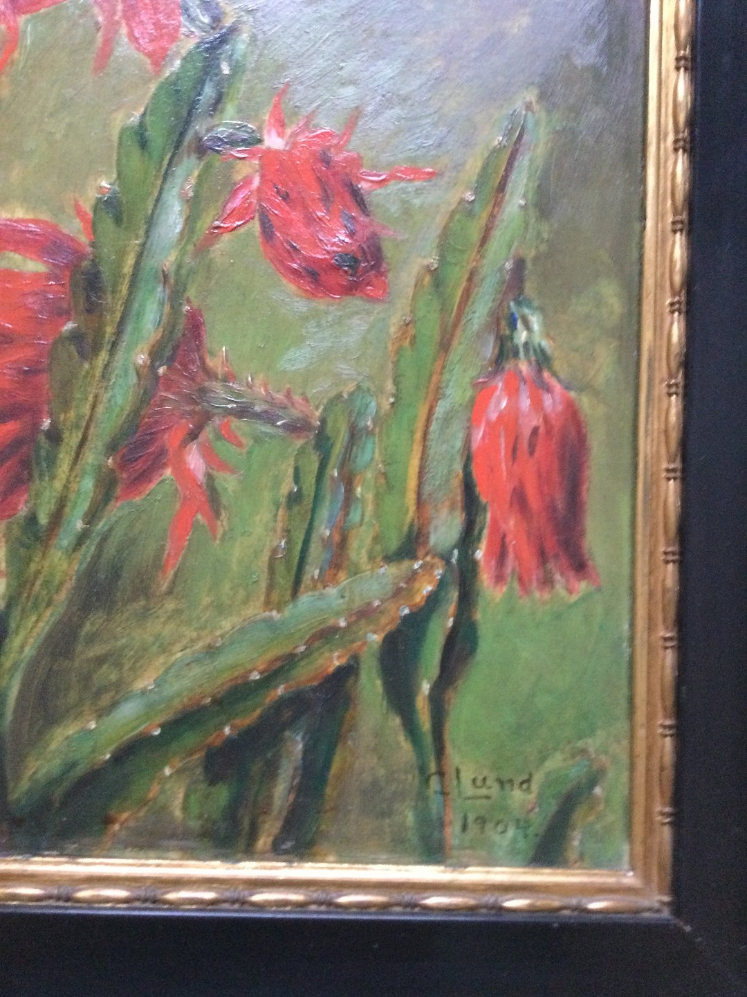 Maleri af Carl Lund 1904 - Blomstrende Bladkaktus.