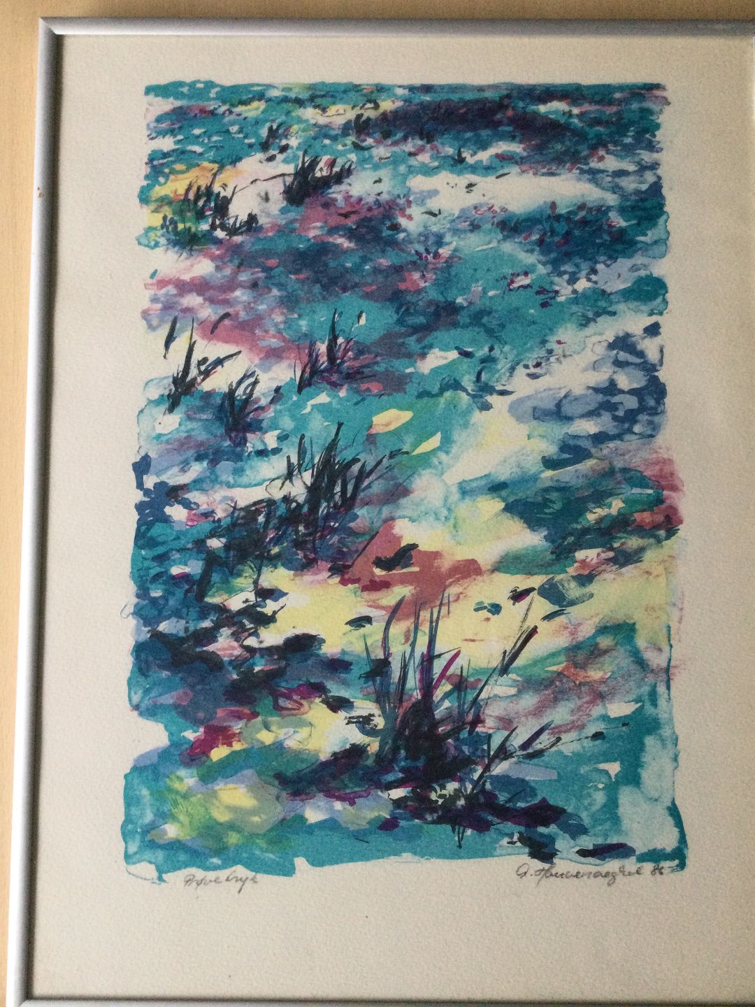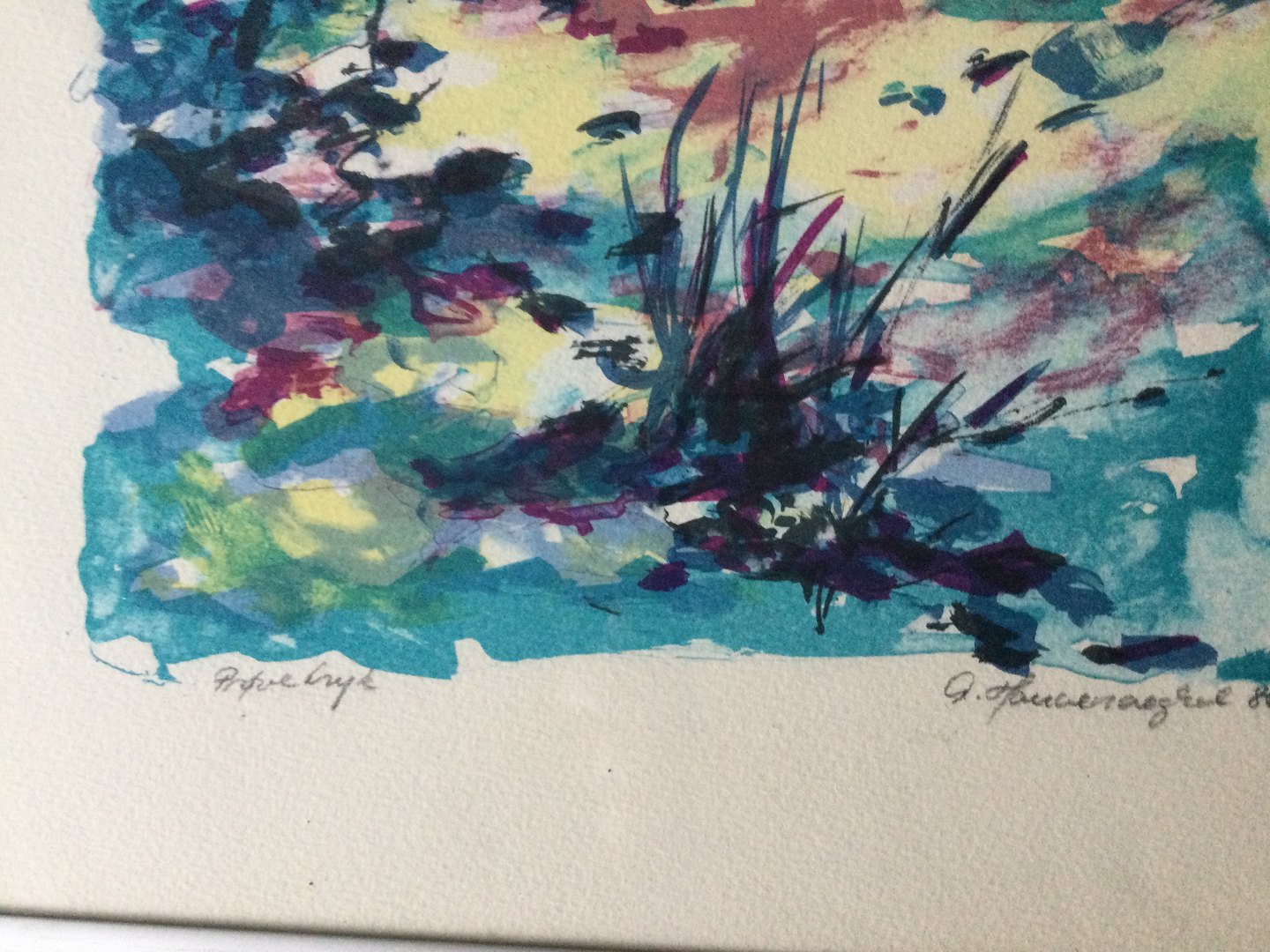 Farvelitografi af Anita Houvenaeghel - Komposition 1986