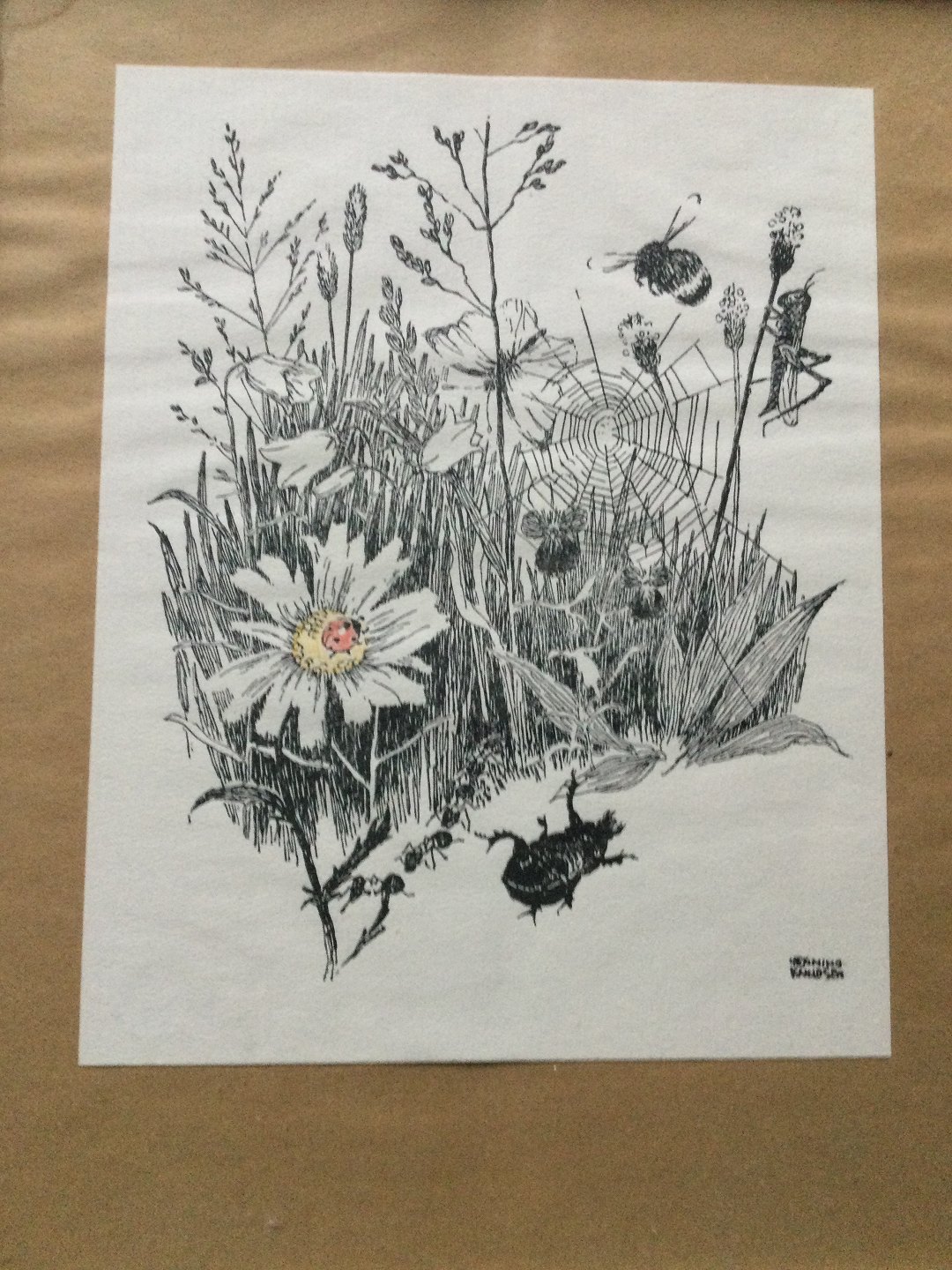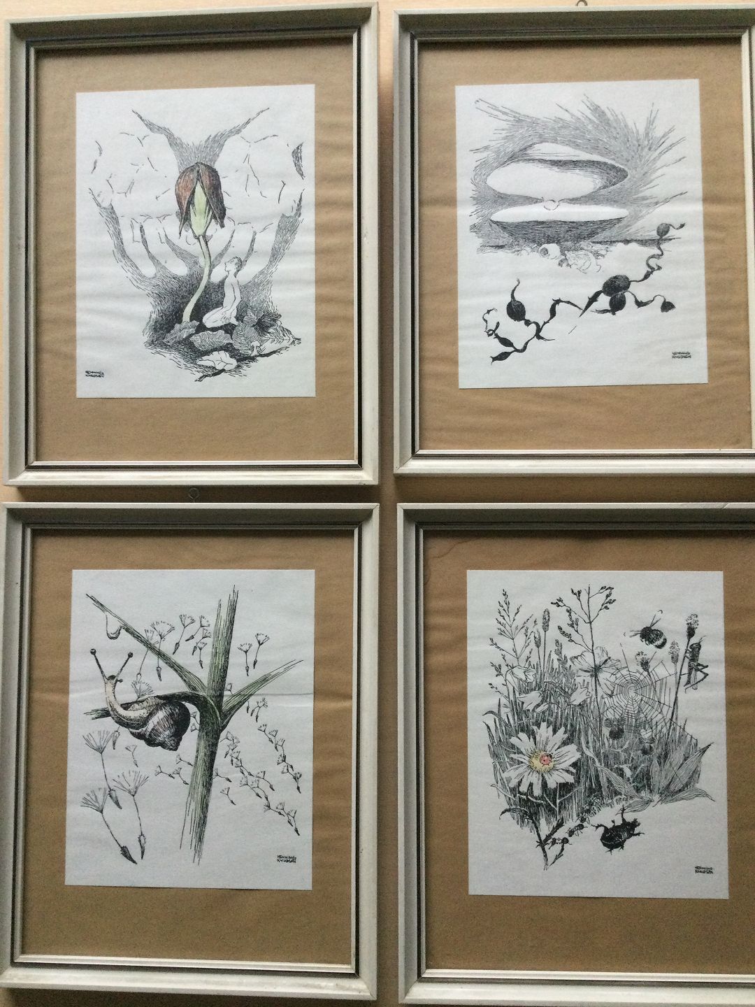 Motivet med snegl og motivet med bille har jeg også med anden indramning.