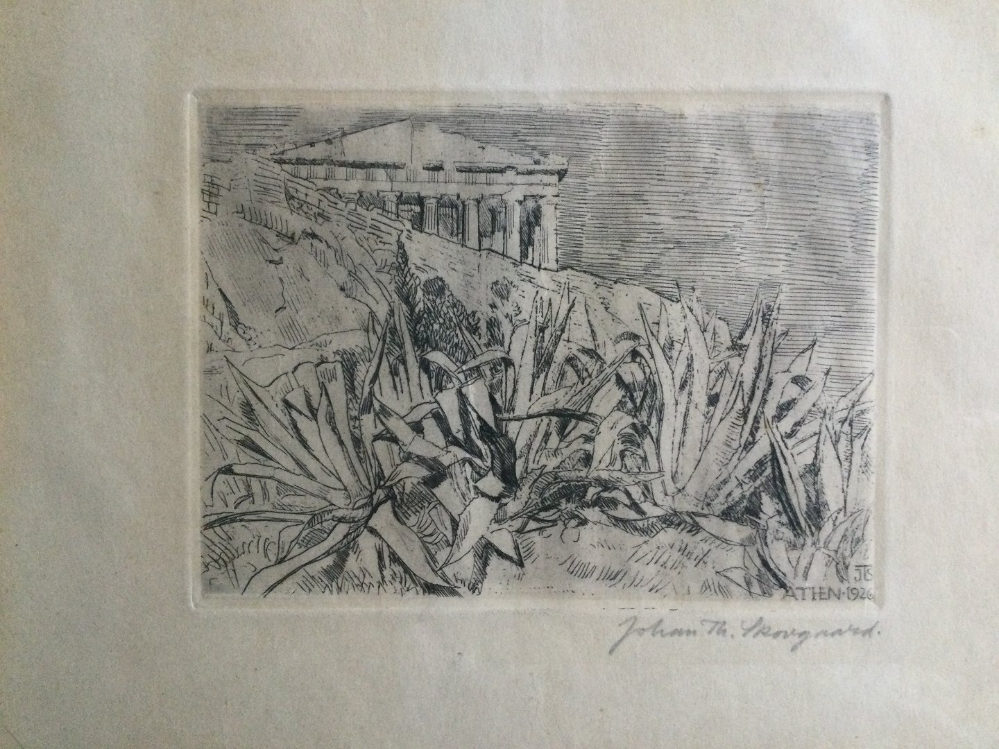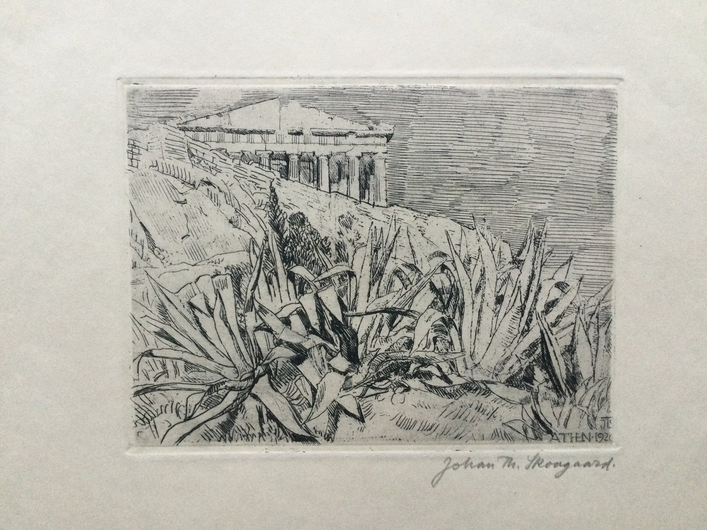 Text available in Danish: Radering af Johan Thomas Skovgaard - Athen 1926.