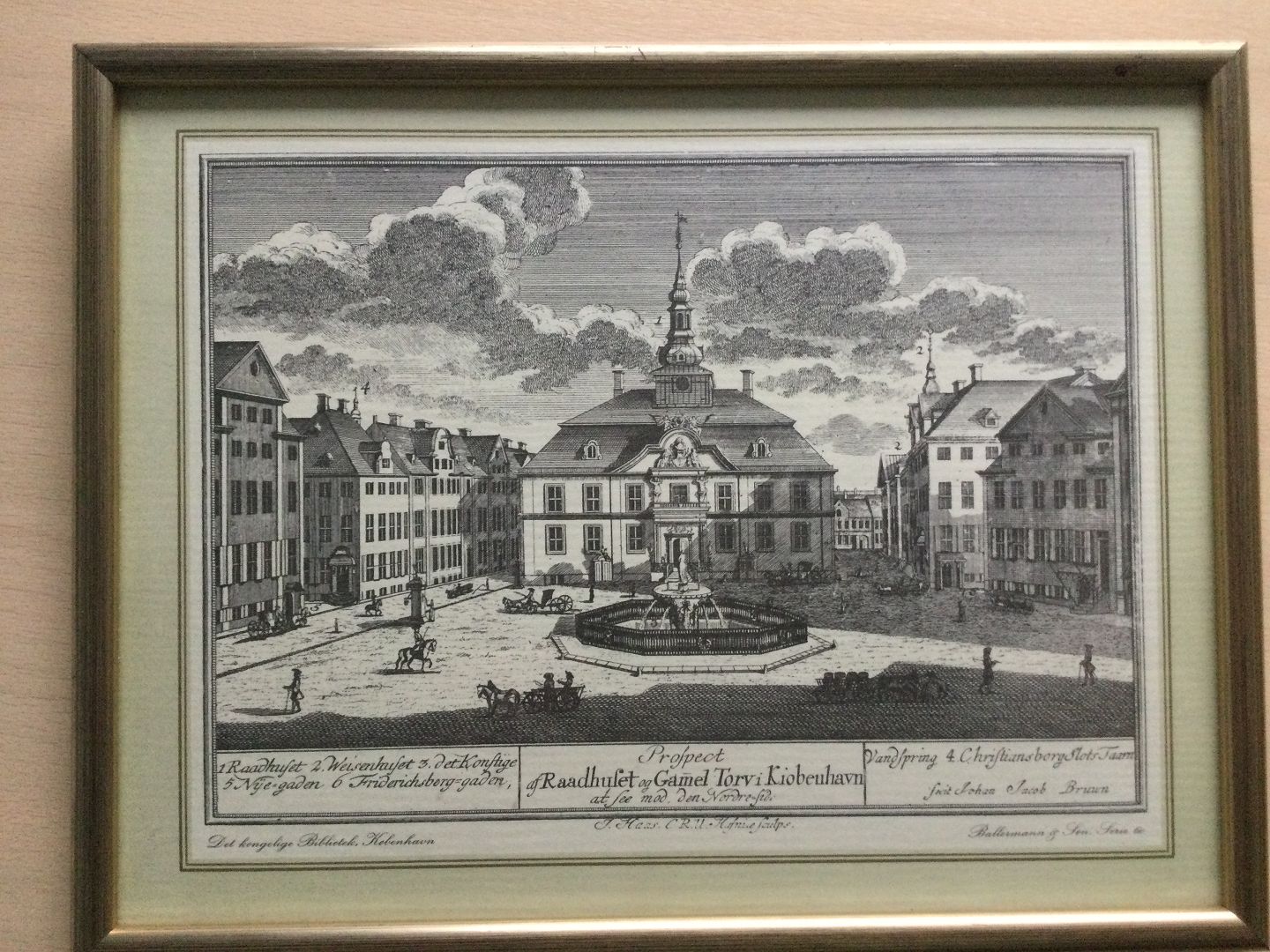 Litografisk tryk efter kobberstik "Rådhuset på Gammel Torv"
