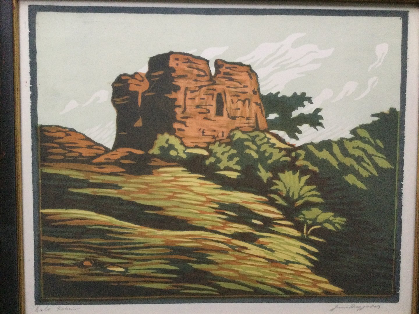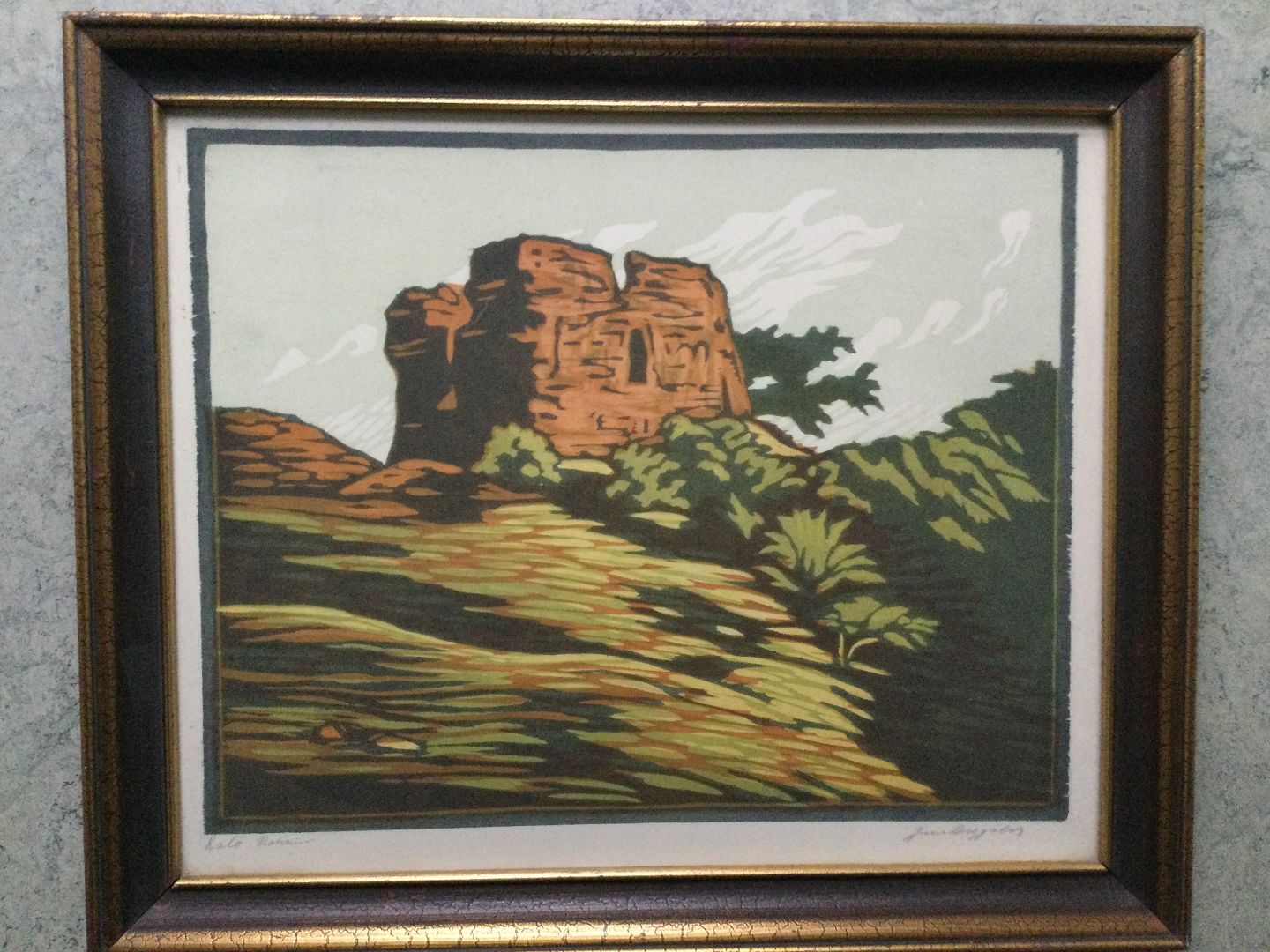 Farvetræsnit af Jens Dragsbo - Kalø Slotsruin.