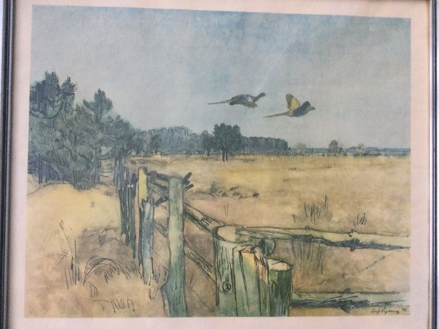 Offset tryk af Leif Rydeng 1956 - Flyvende fasaner.