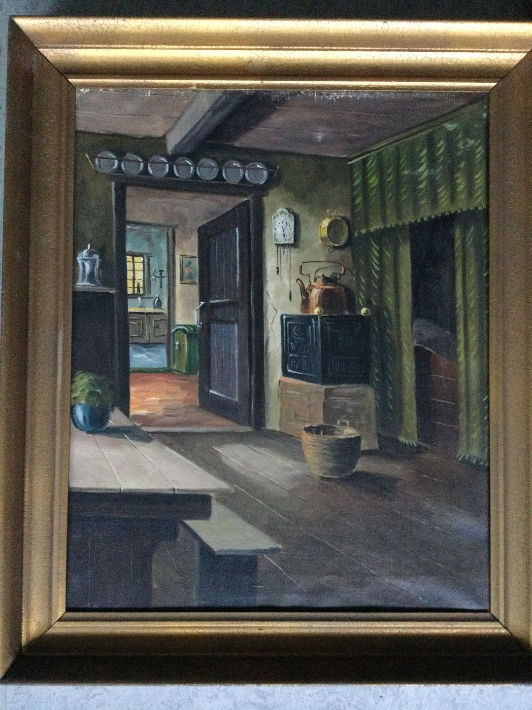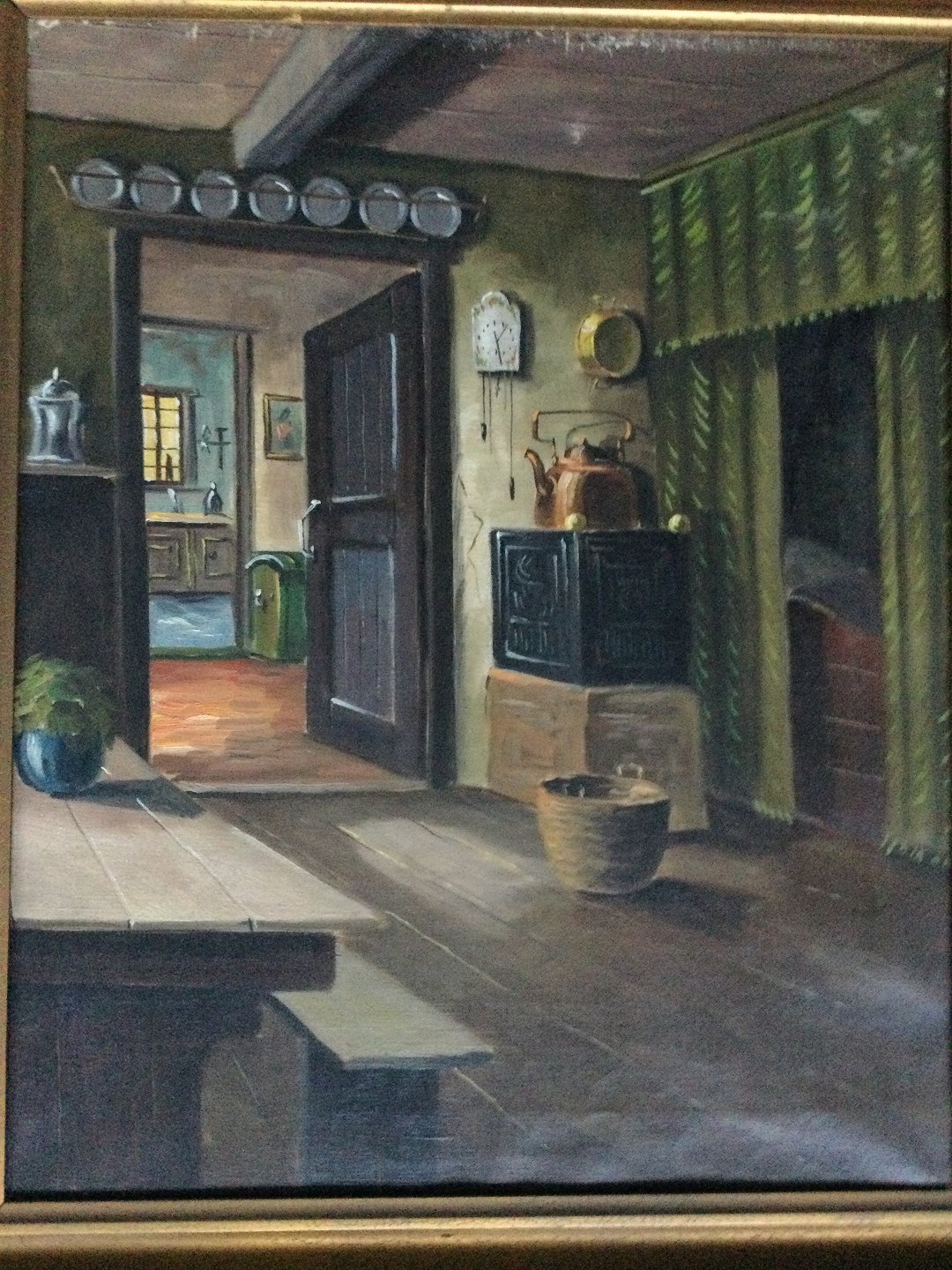 Maleri af Børge Ball - Interiør fra bondestue.