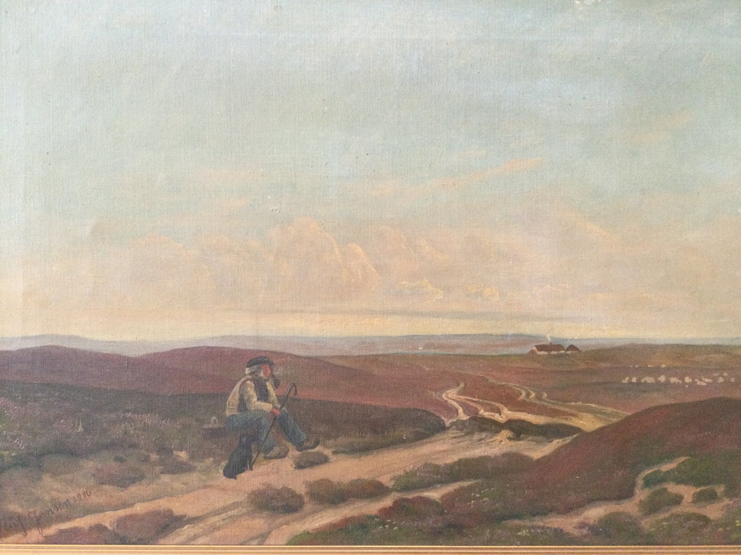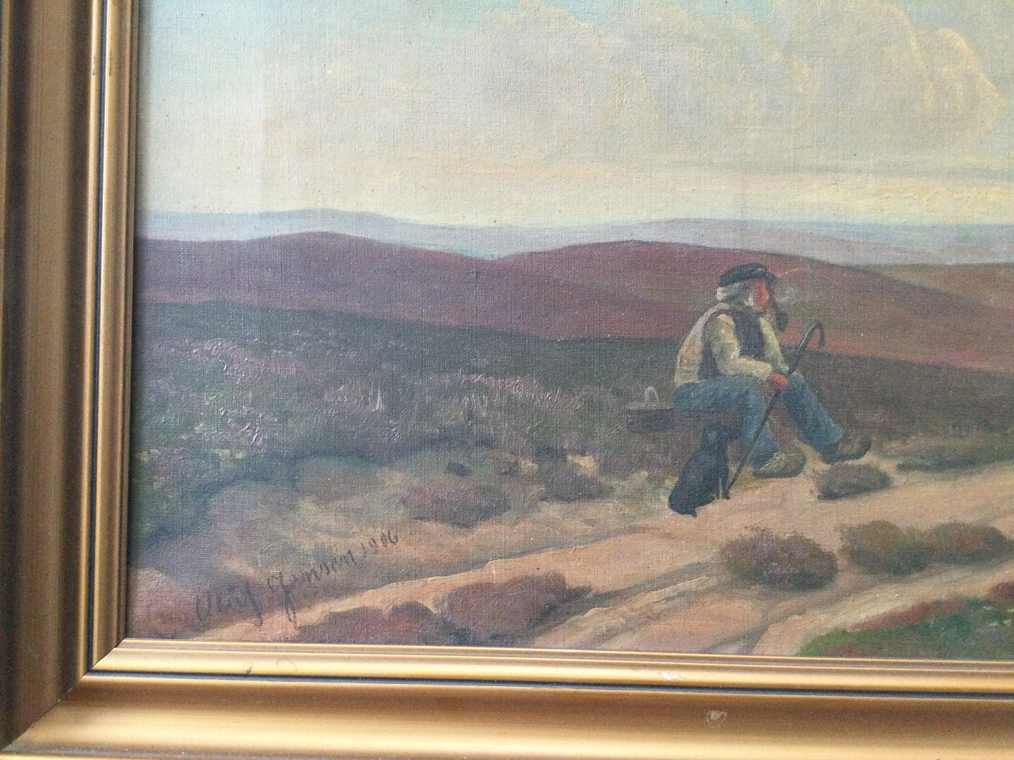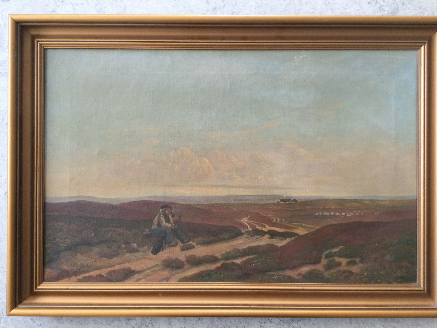 Maleri af Oluf Jensen - Fårehyrde på Heden 1906.