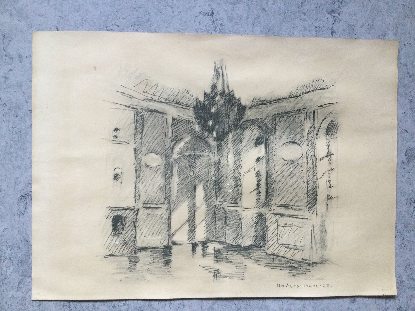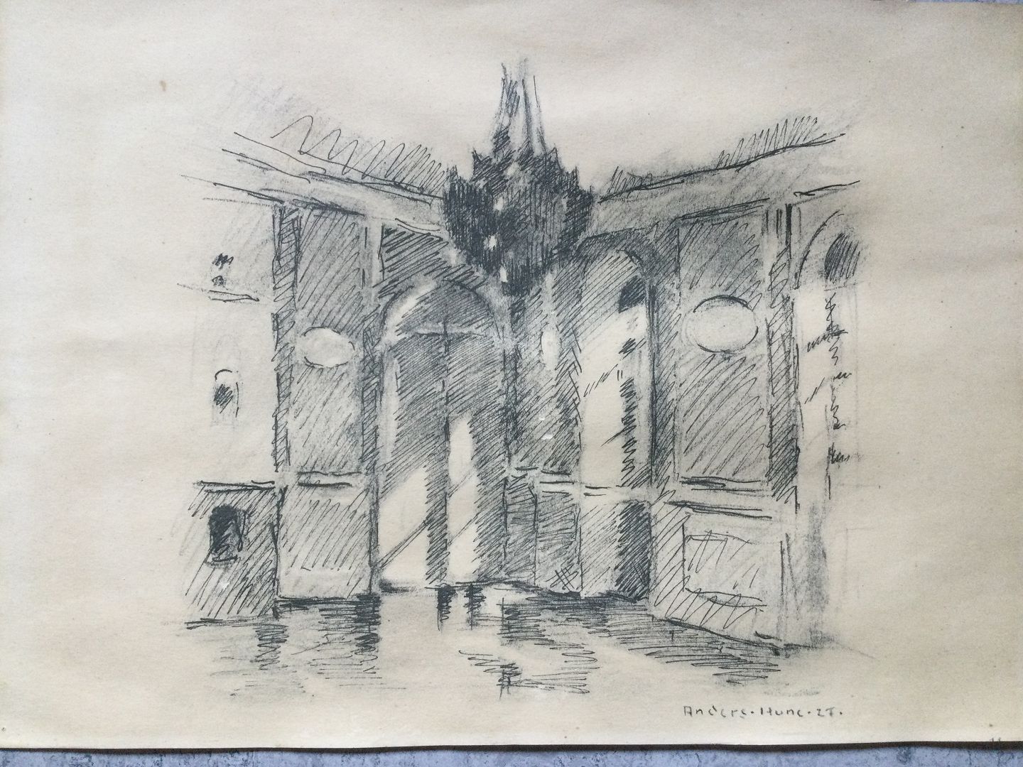 Tryk efter tegning af Anders Hune 1927.