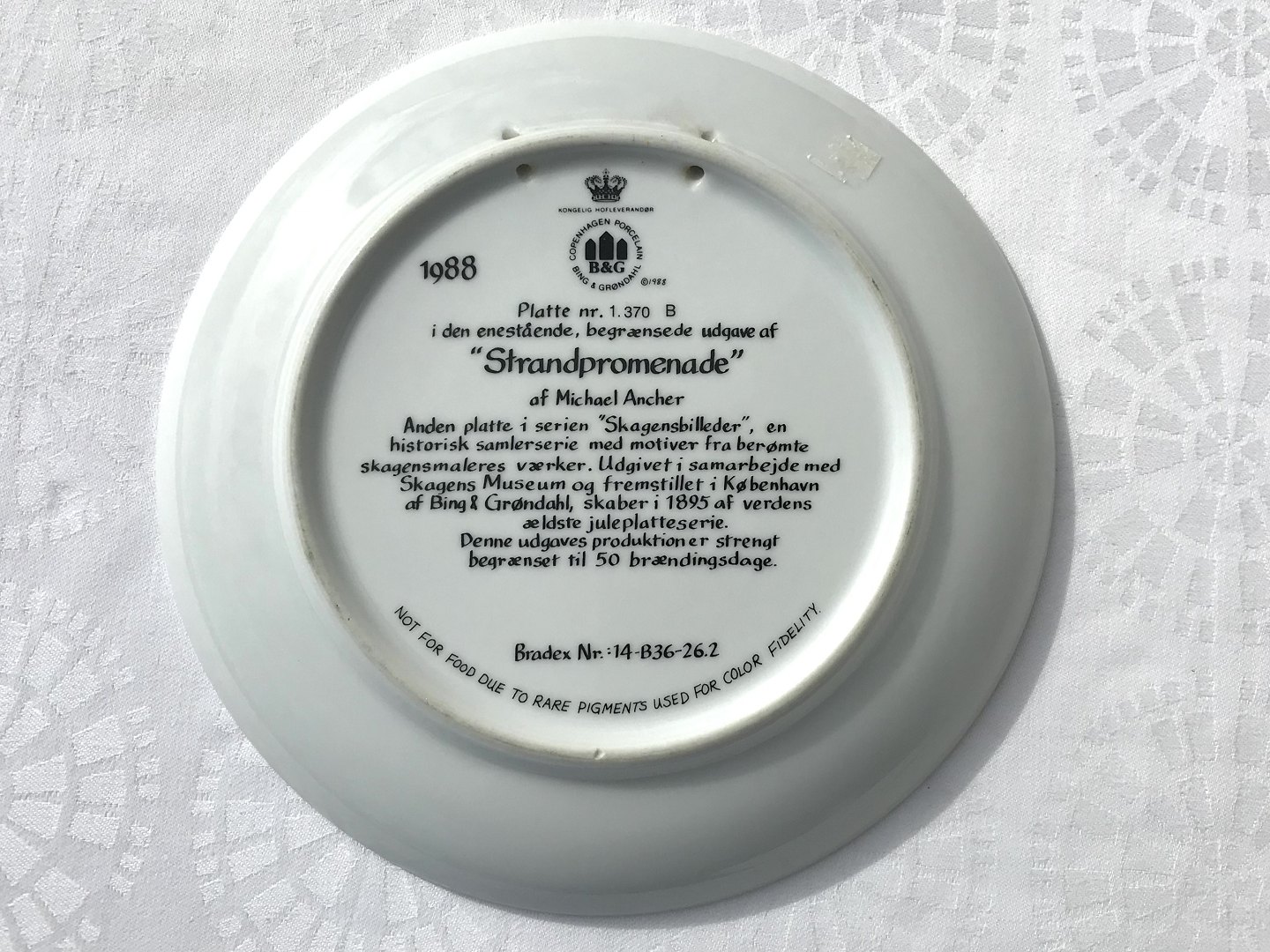 | Bing & Grøndahl, Skagensmalerne, 1988, Platte nr. 6, “Strandpromenade”, Michael Anker, 21cm i diameter, *Perfekt stand*