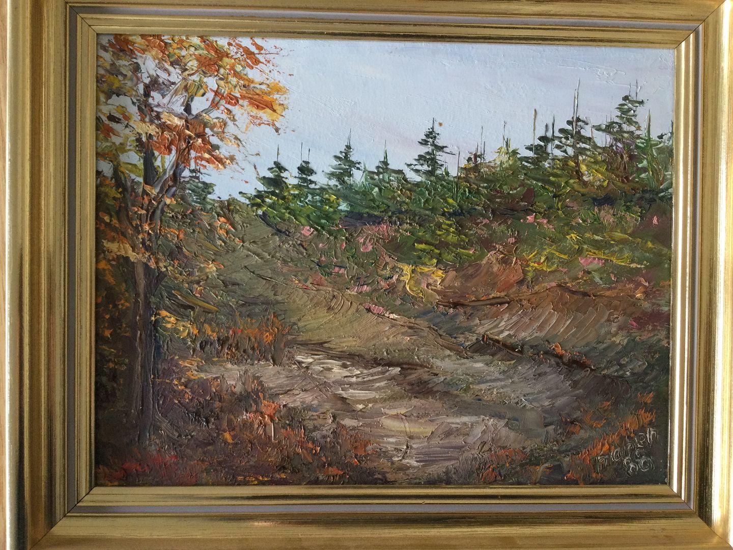Maleri 1988 - Klitparti med graner.