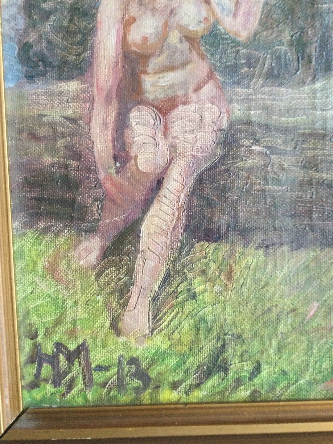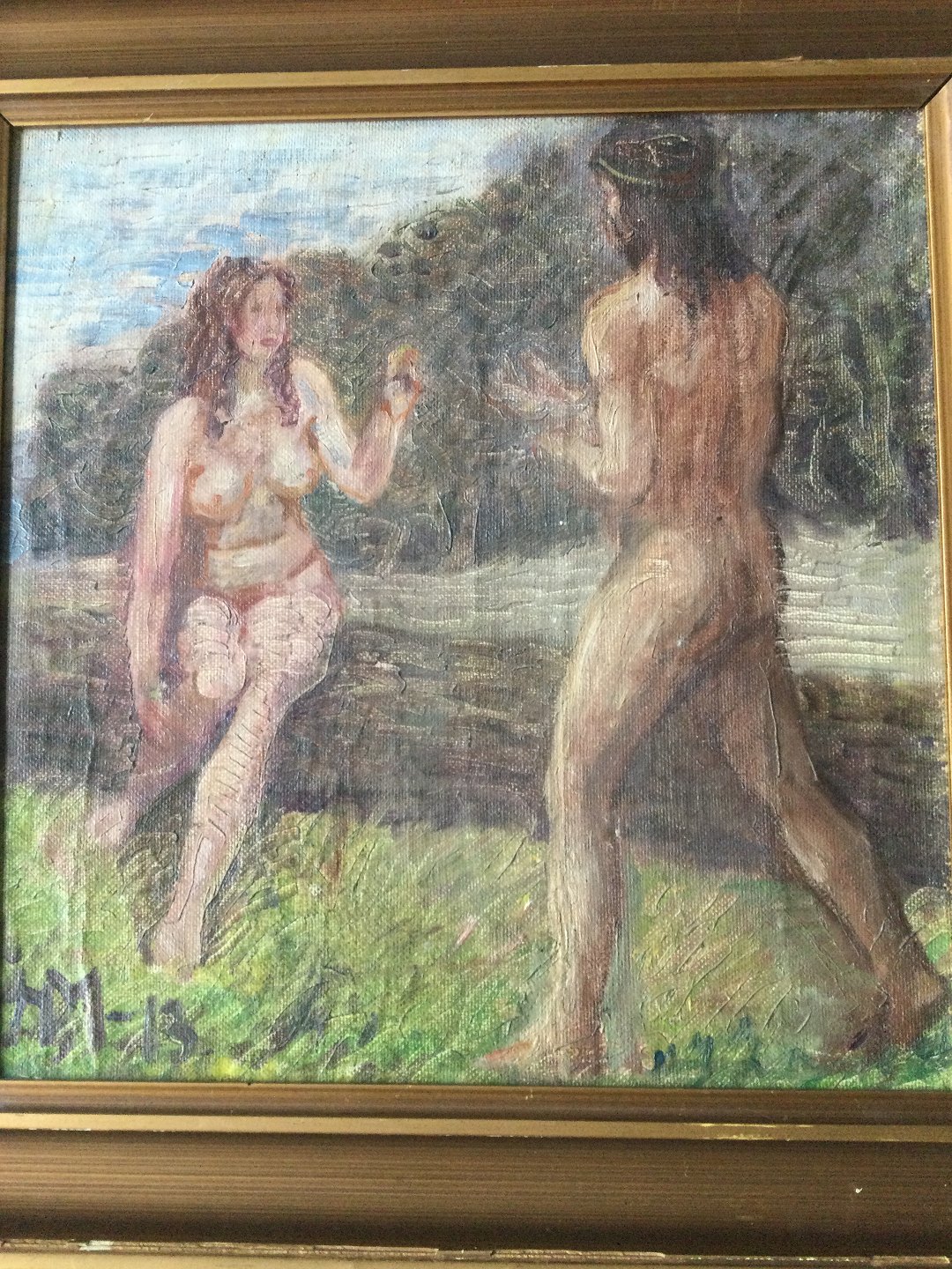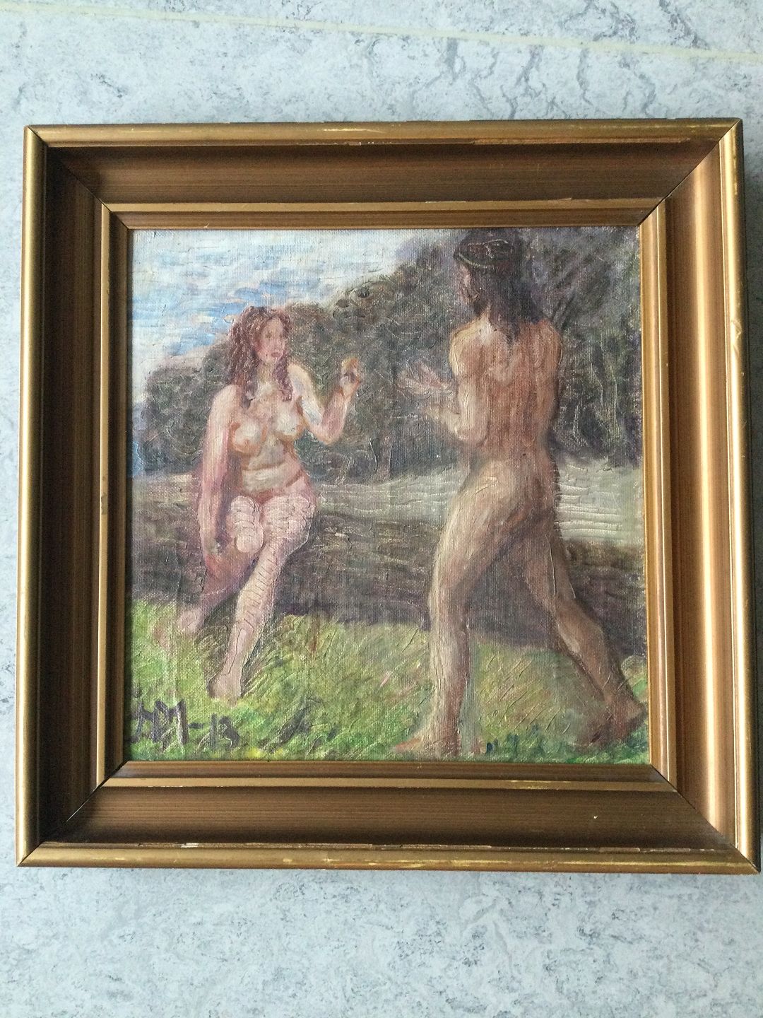 Maleri af Harald Moltke - Eva frister Adam i Edens Have 1913.