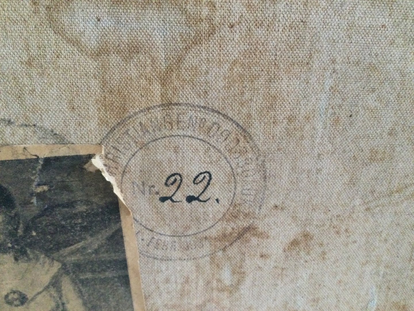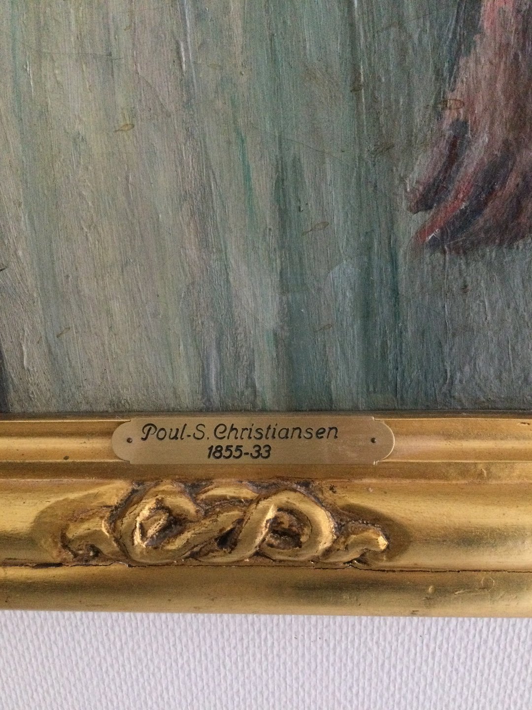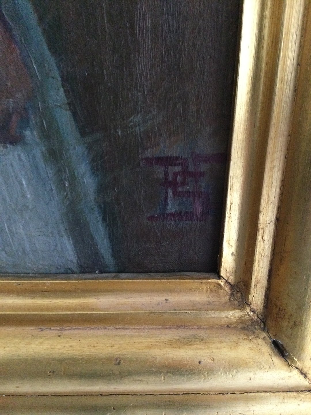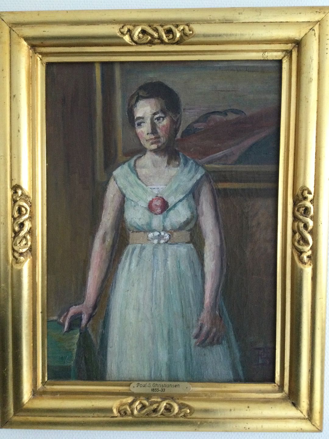 Bagpå lærred stempel fra Poul S. Christiansens dødsboauktion nr. 22 - i kataloget har maleriet titlen "Staaende Dame".