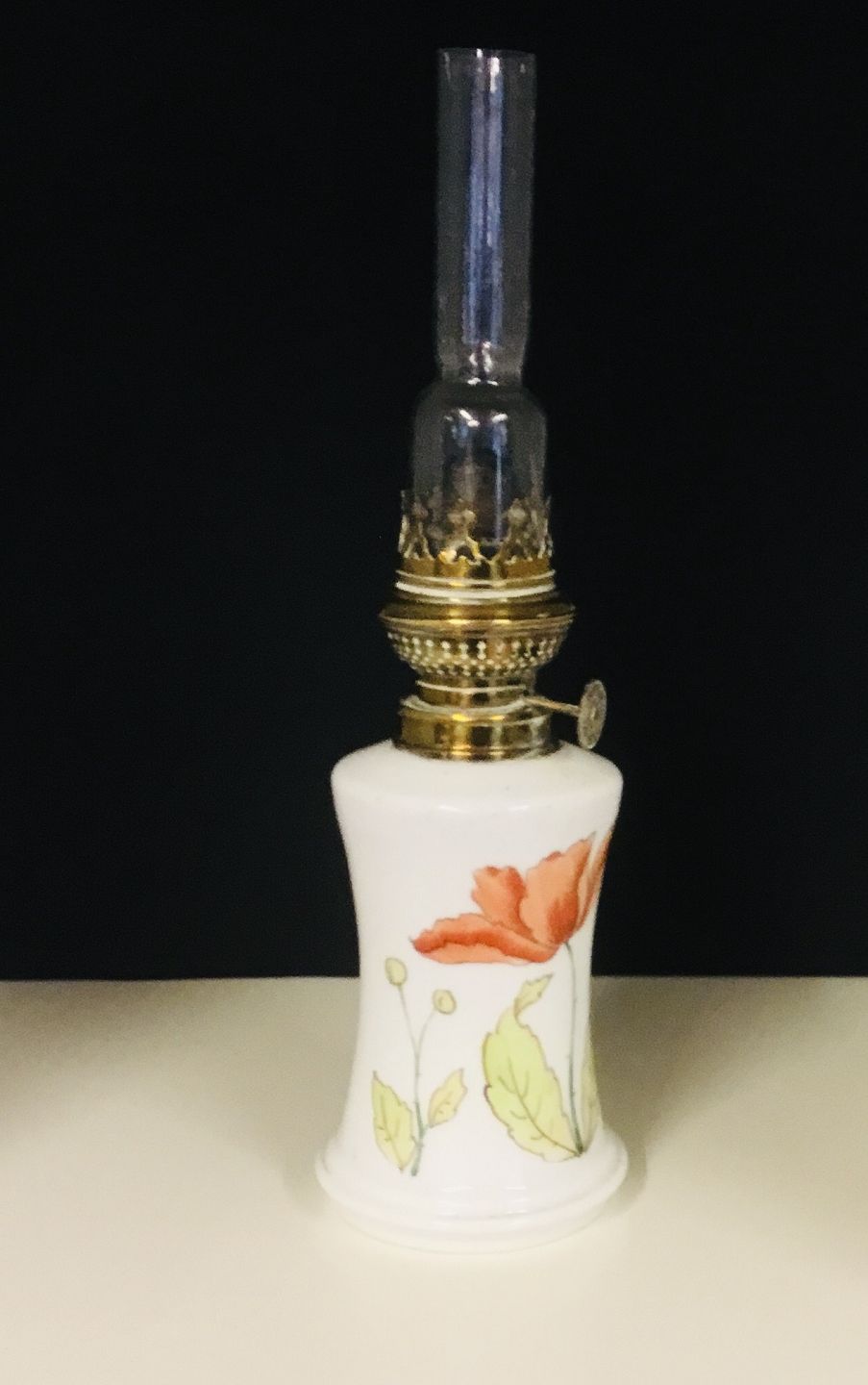 Natlampe i bemalet opalineglas fra Fyns Glas