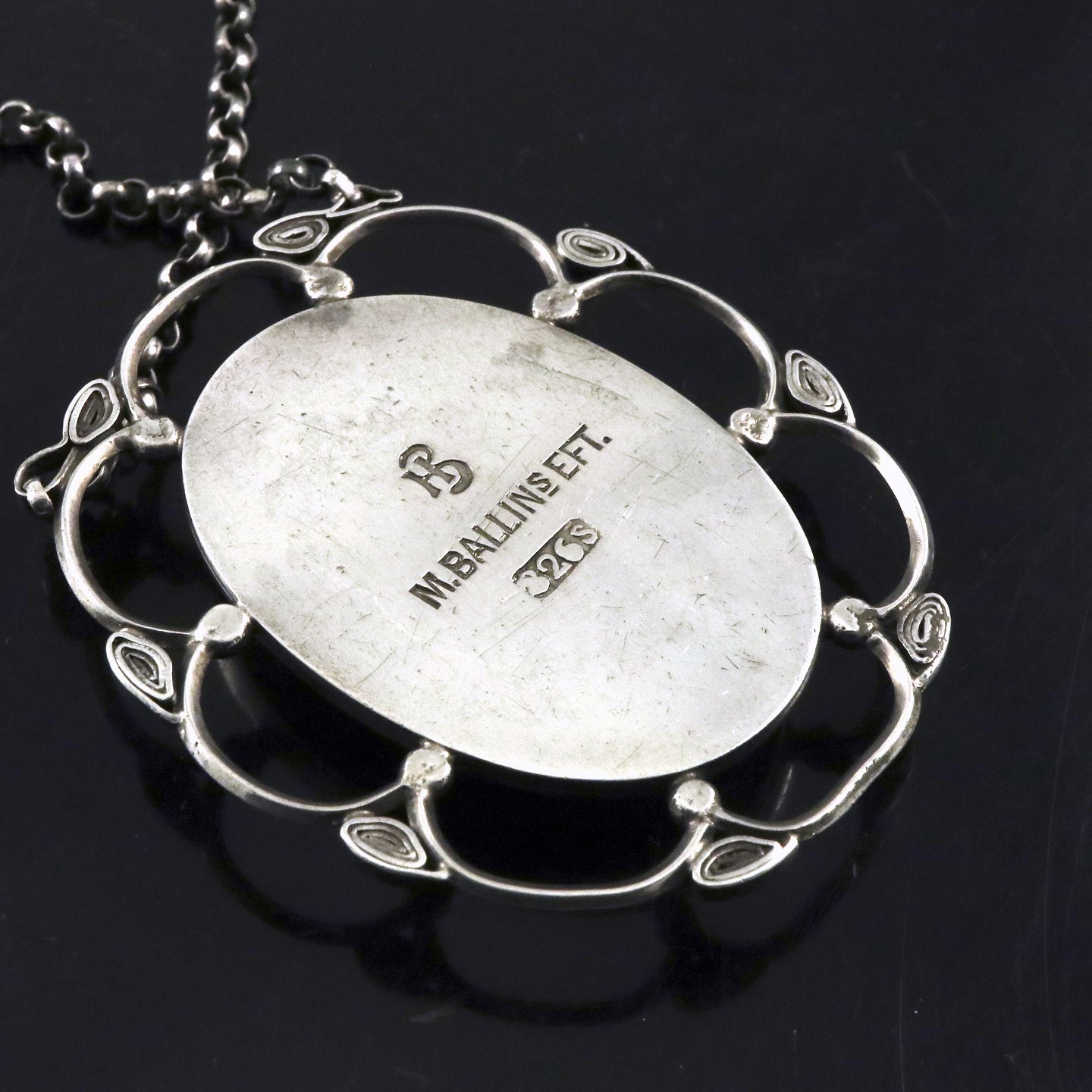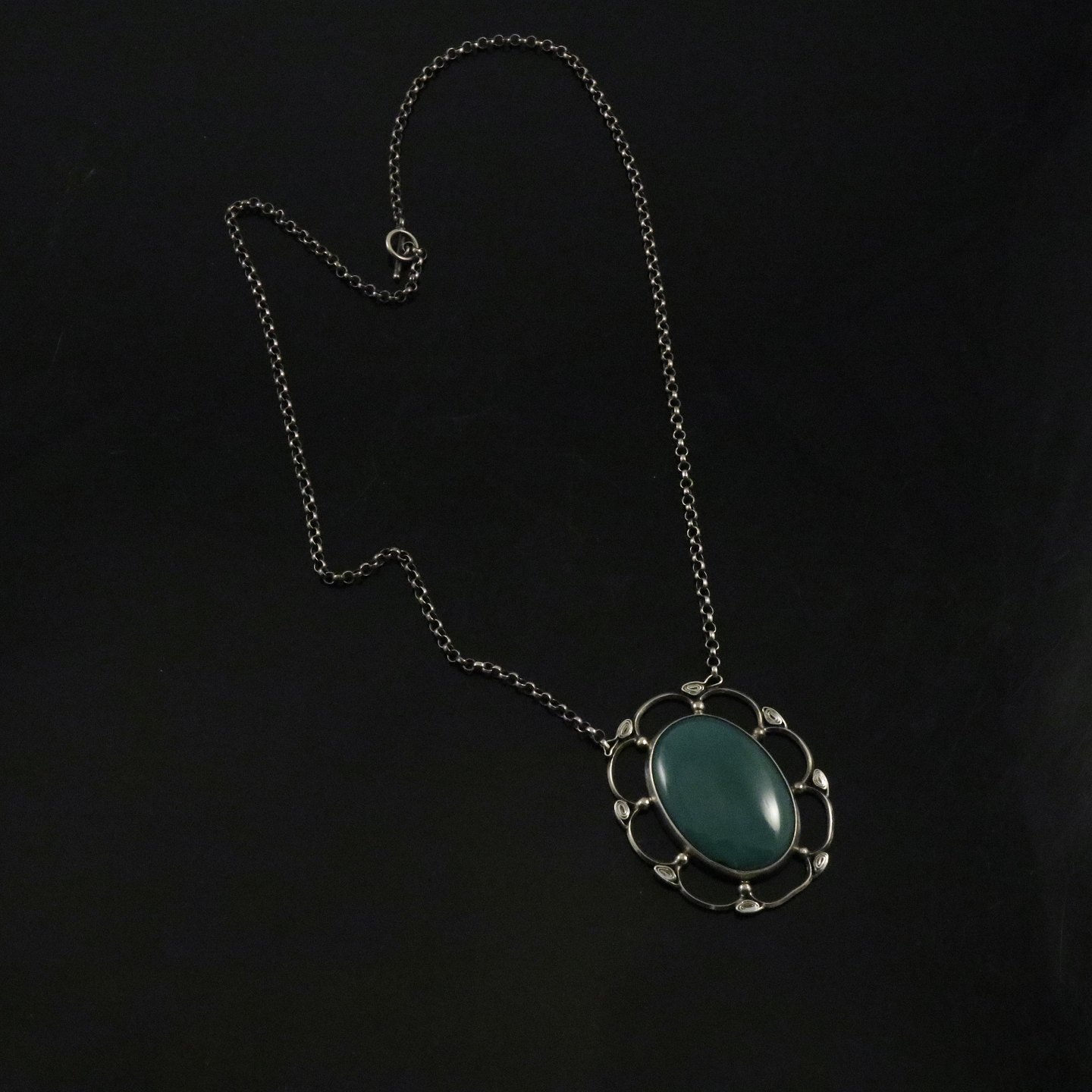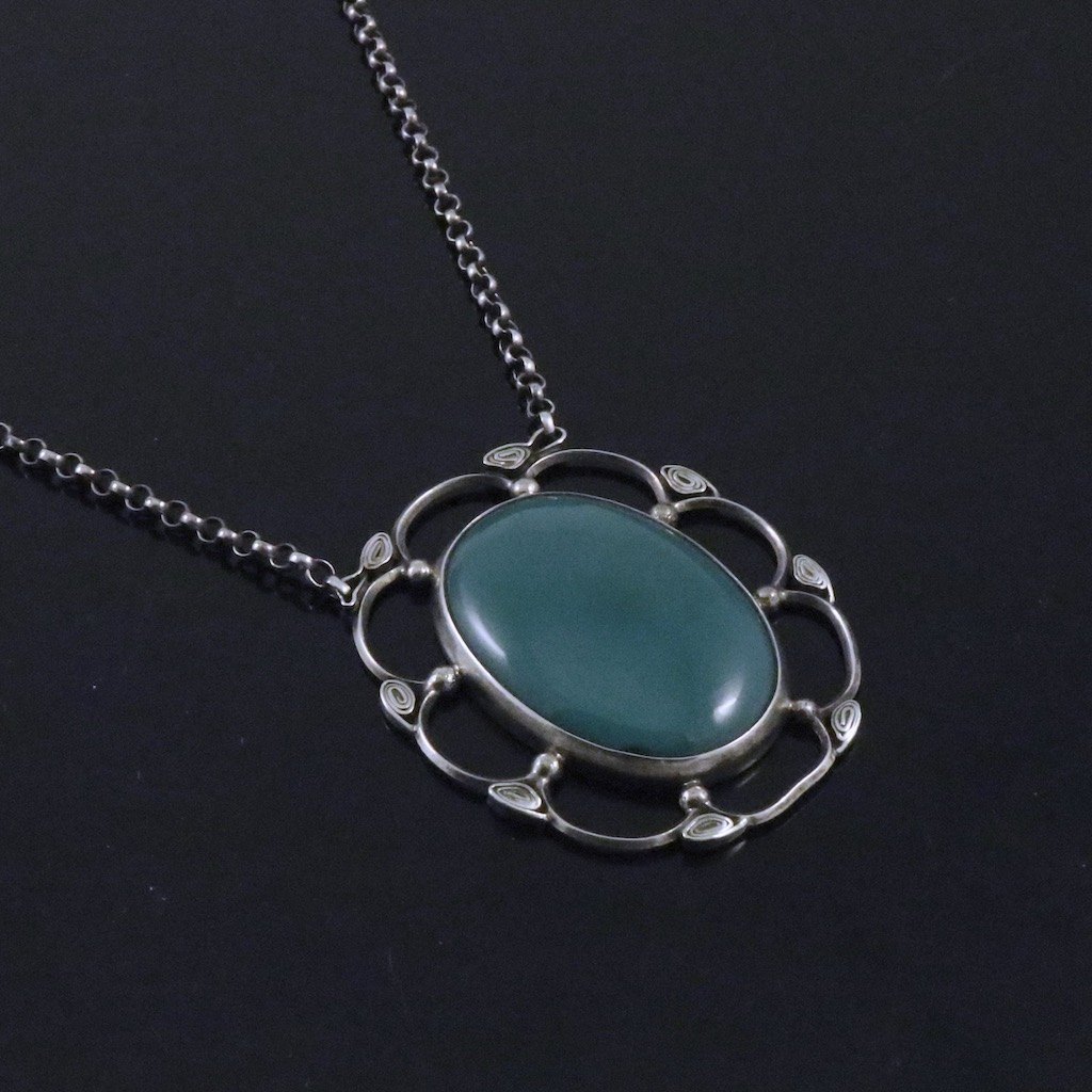 Mogens Ballin's Eft. Skønvirke Vedhæng i sølv med grøn agat.