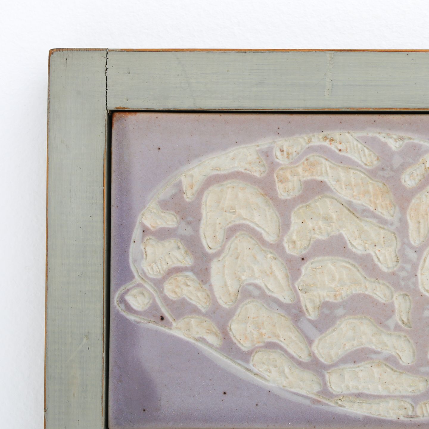 Relief af porcelænsfliser med motiv af konkylier. Signeret.