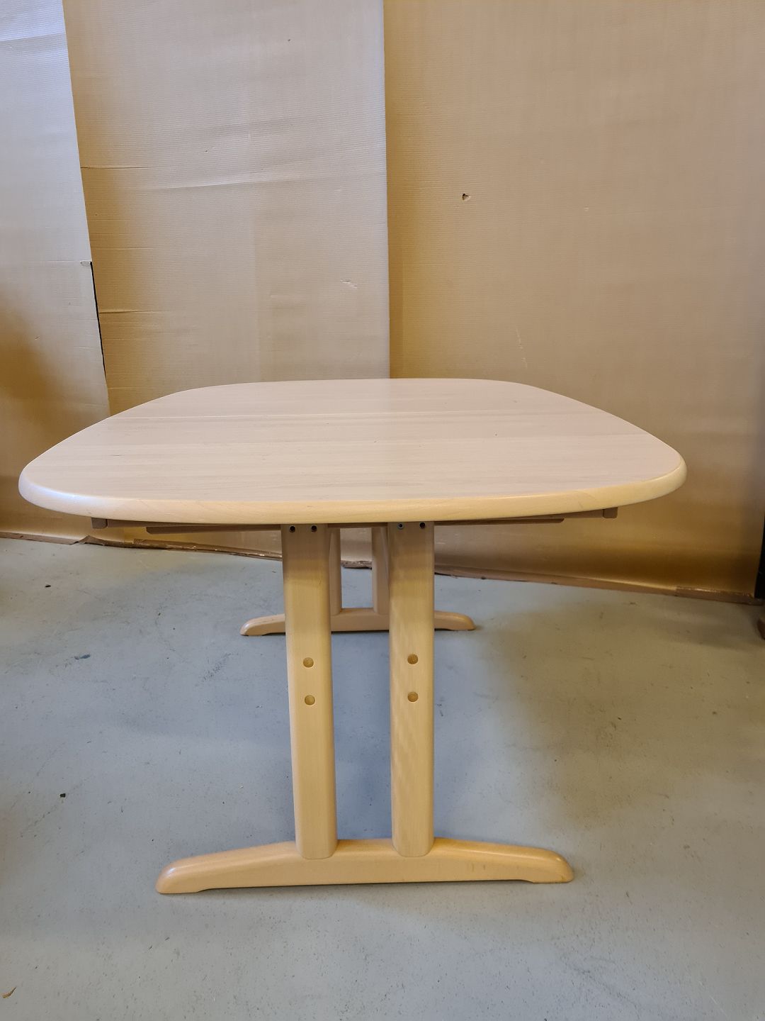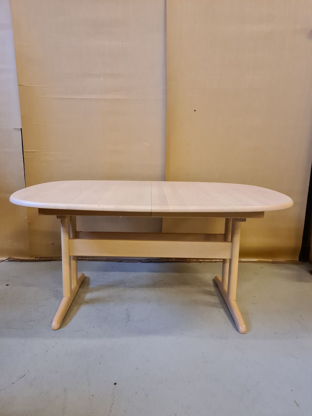 Spisebord i massivt bøgetræ med 2 tillægsplader fra 1990erne.