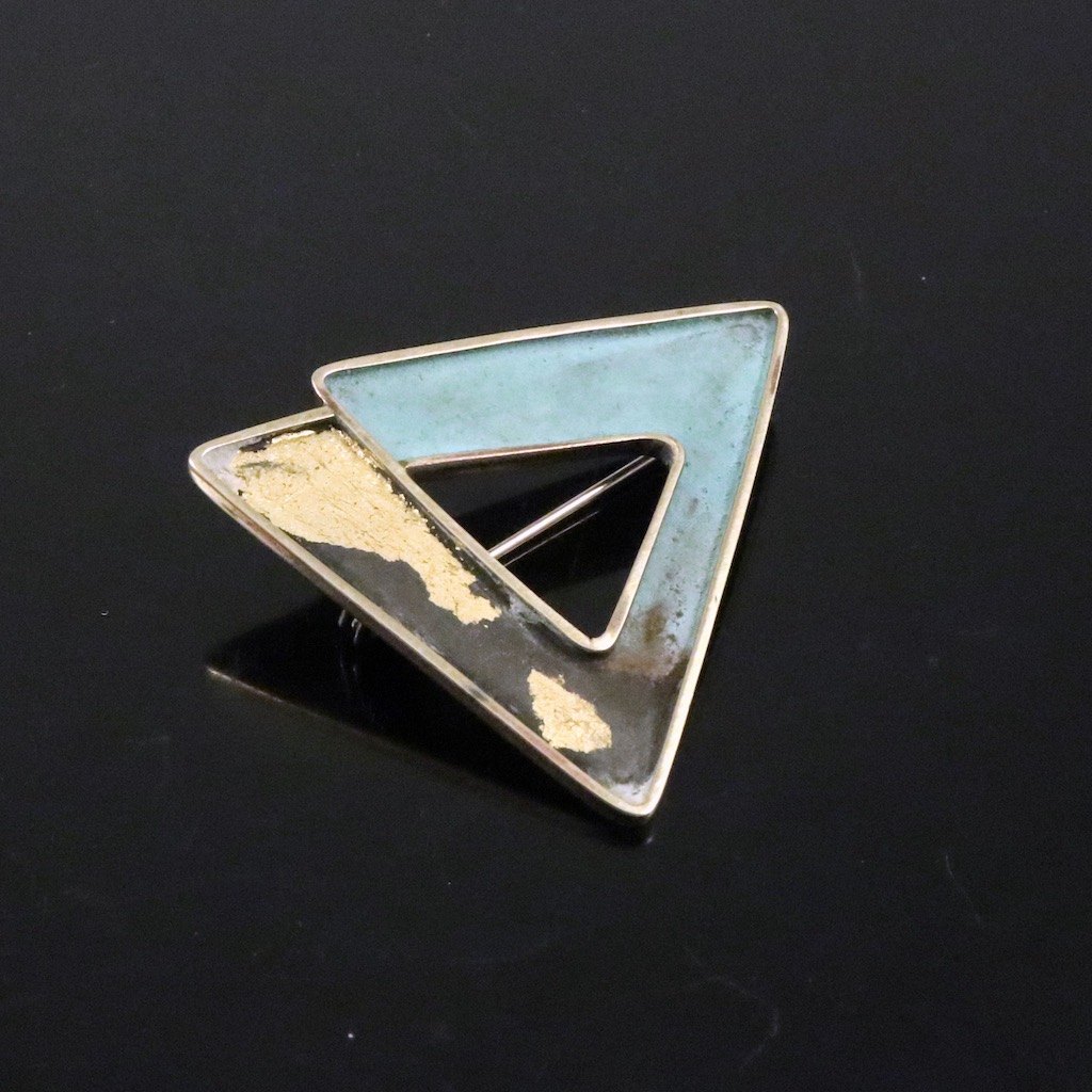 Leon Kastbjerg Nielsen. Broche i patineret messing med bladguld.