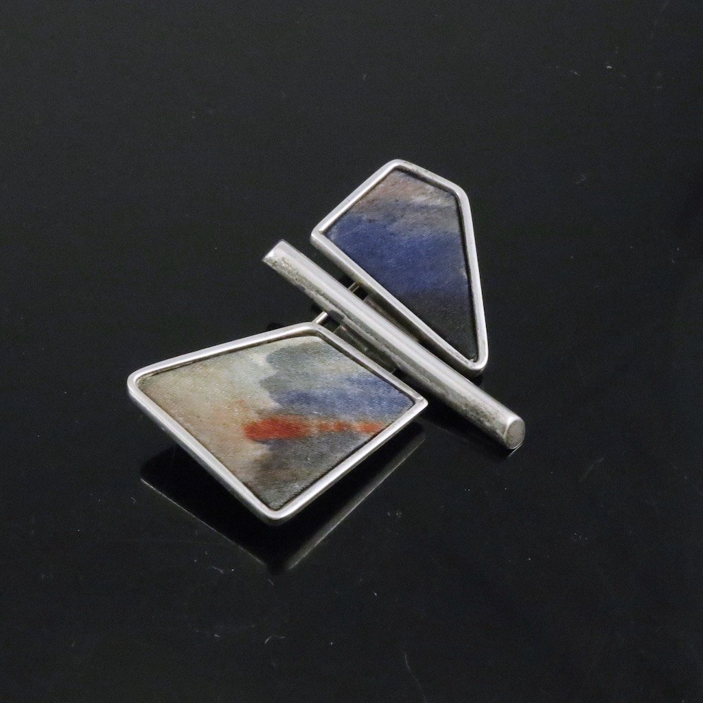 Leon Kastbjerg Nielsen / Hanne Foss Brink. Broche i sterlingsølv med tekstilkunst.