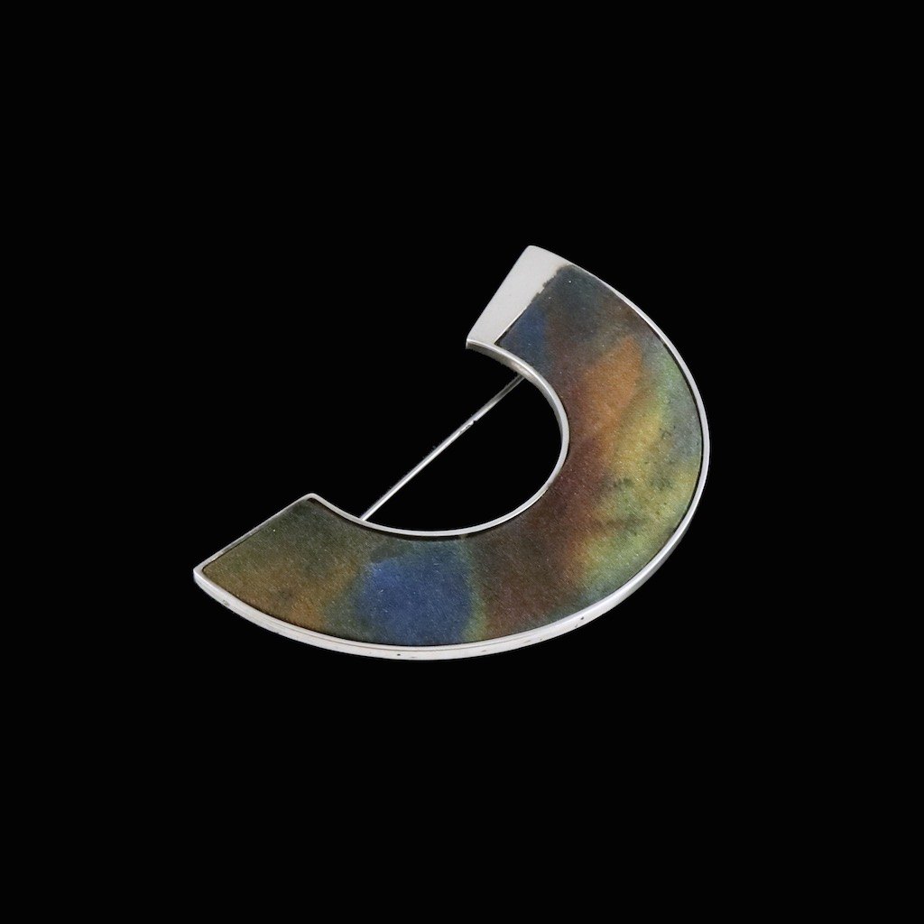 Leon Kastbjerg Nielsen - Denmark. Handmade Sterling Silver Brooch with Textile Art.