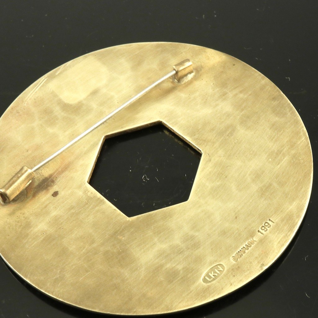 Leon Kastbjerg Nielsen. Handmade Brooch in Patinated Brass with Gold Leaf - 1991