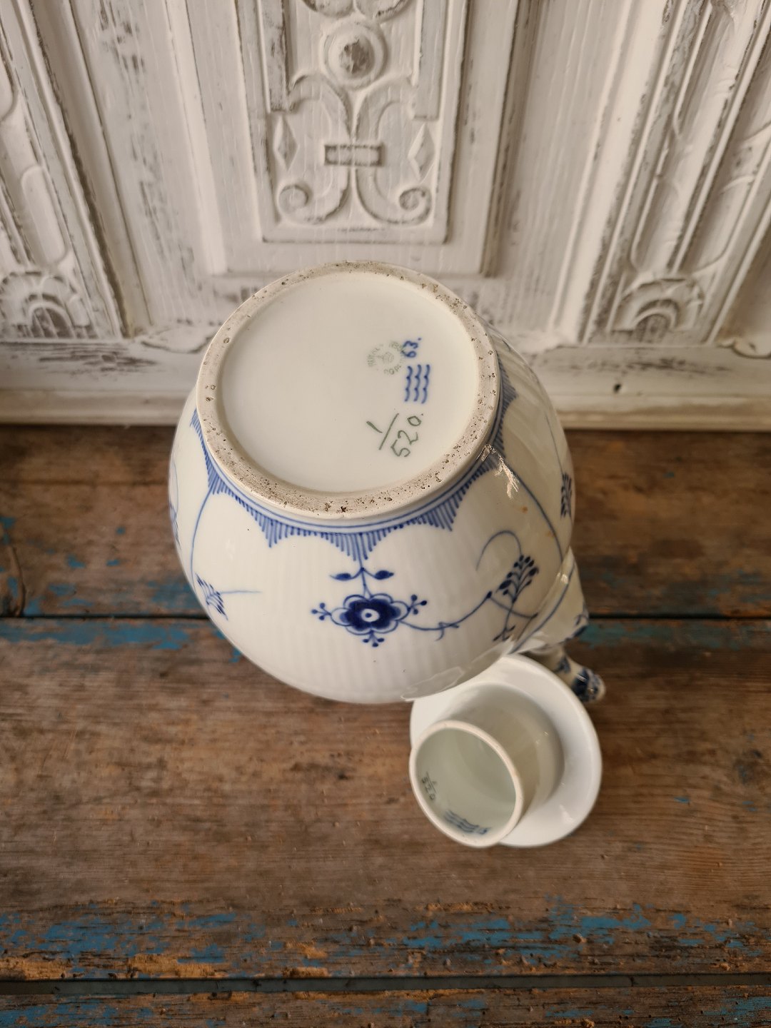 Royal Copenhagen Musselmalet halvblonde stor kaffekande no. 520