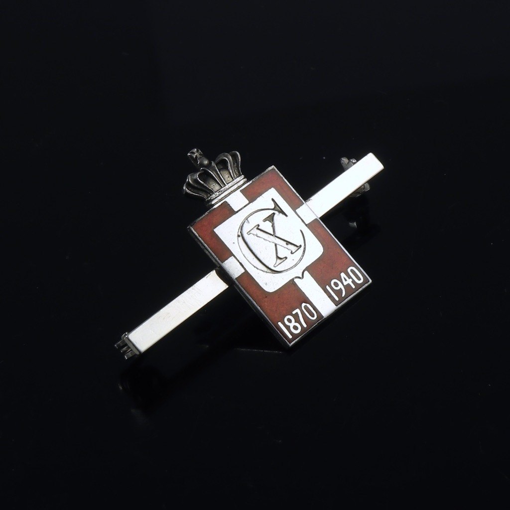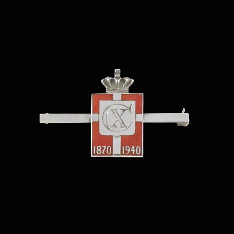 Badge produced and sold to celebrate the 70th birthday of Danish King Christian X. The profits were given as a popular gift to the kings foundation. The badge is also associated with Danish resistance or opposition to the German occupation of Denmark during WWII. Field Marshall Sir Bernard Law Montgomery recieved a gold version of the badge from Georg Jensen after the liberation of Denmark.