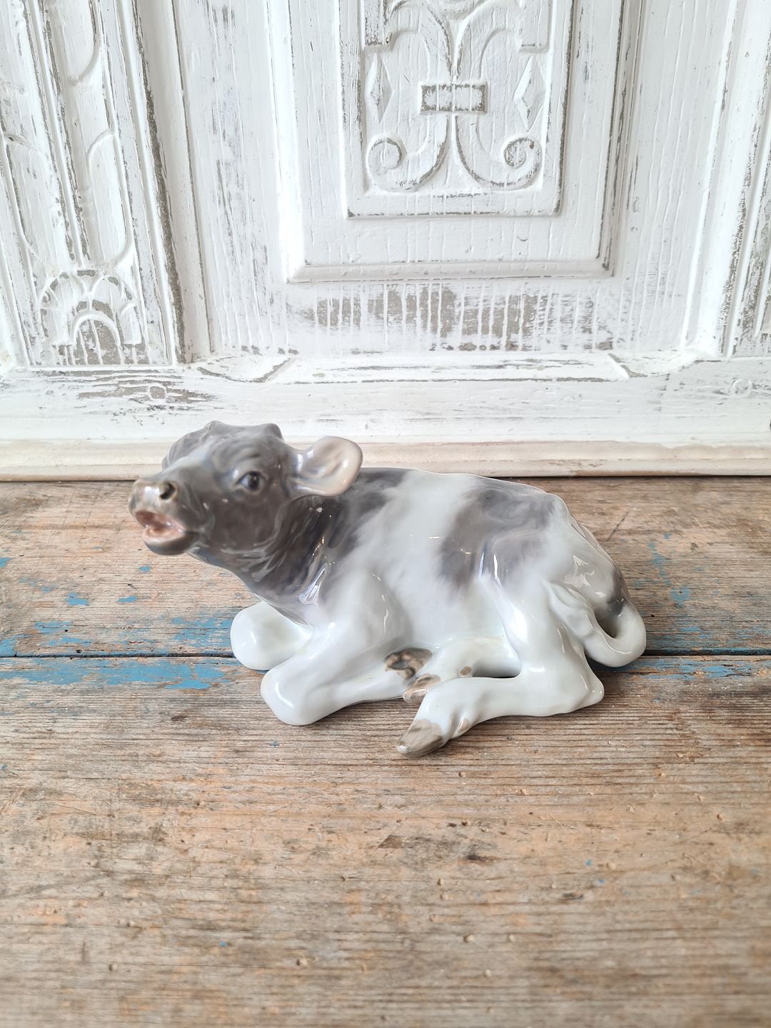 Royal Copenhagen Figur - Kalv - grå og hvid broget