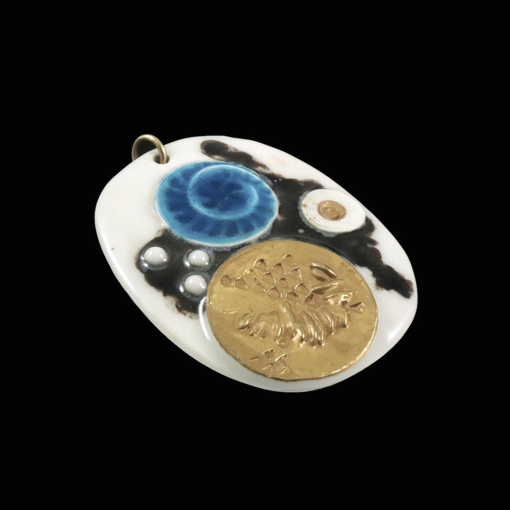 Royal Copenhagen / A. Michelsen. Porcelain and Gilded Sterling Silver Pendant.