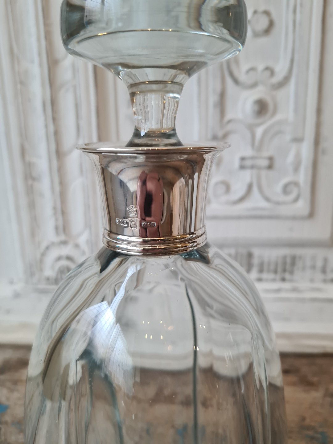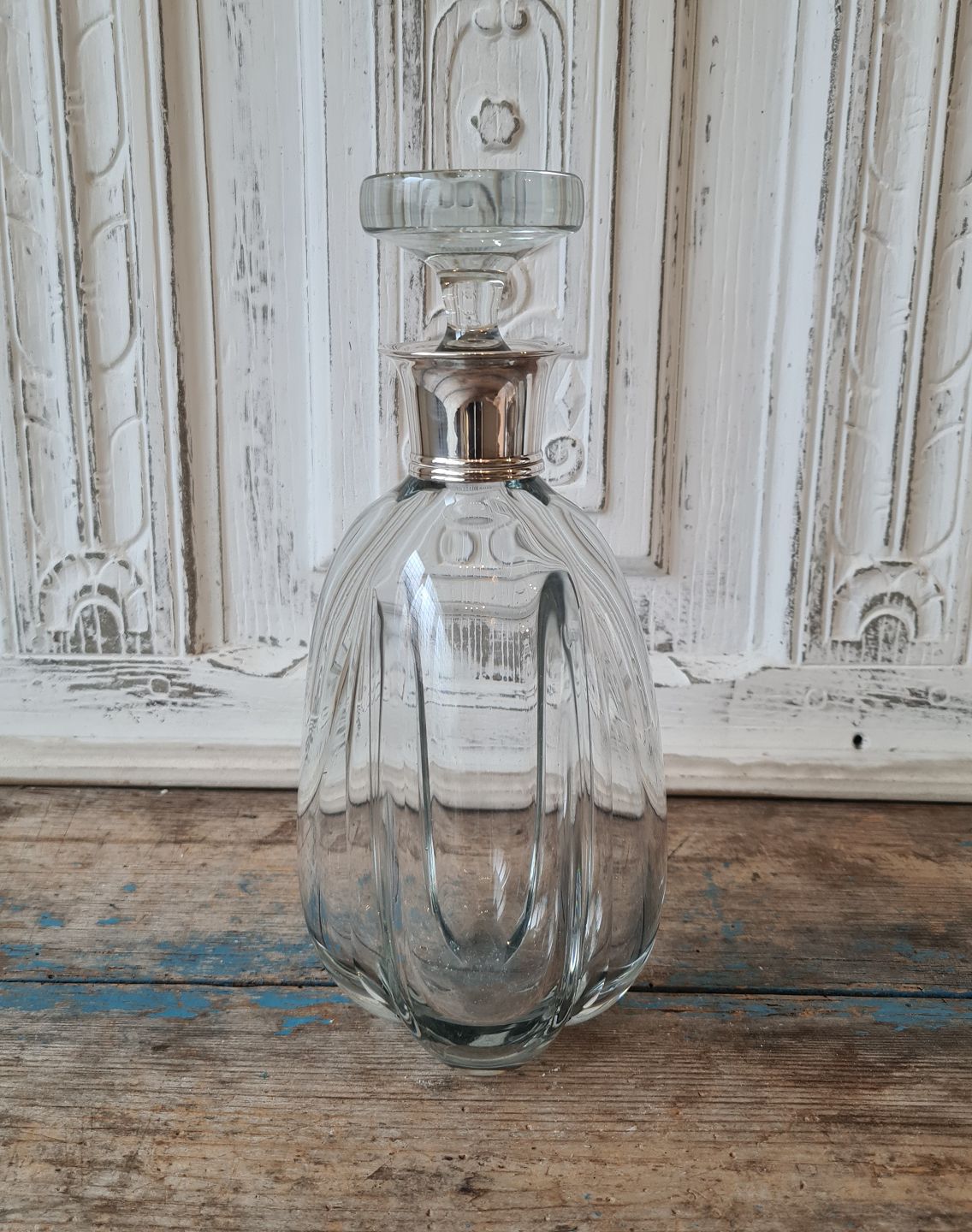 Smuk karaffel i kraftigt glas med sølv montering fra 1961