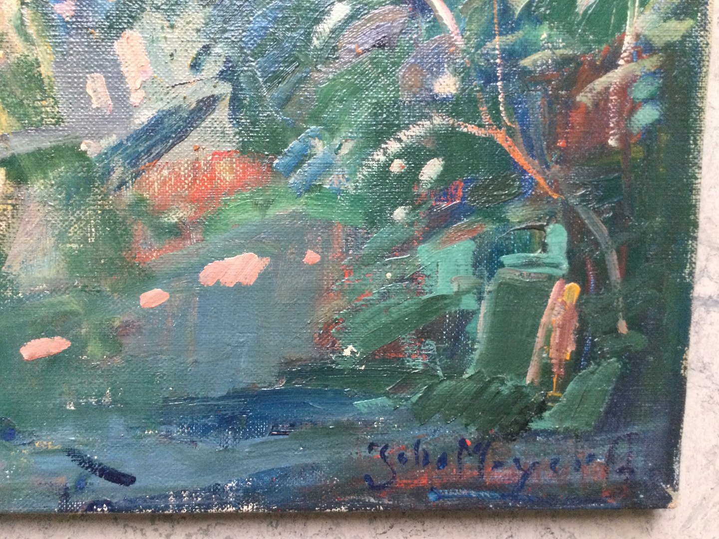 Maleri af Johannes Meyer Andersen - Vue ud over by på Bornholm.