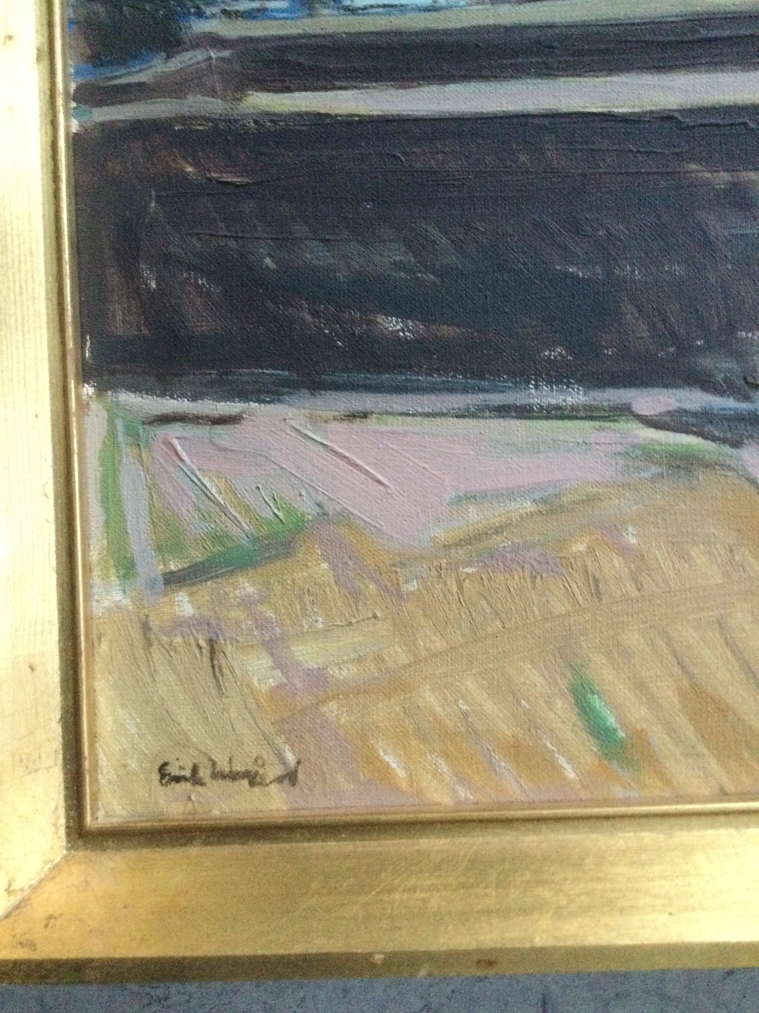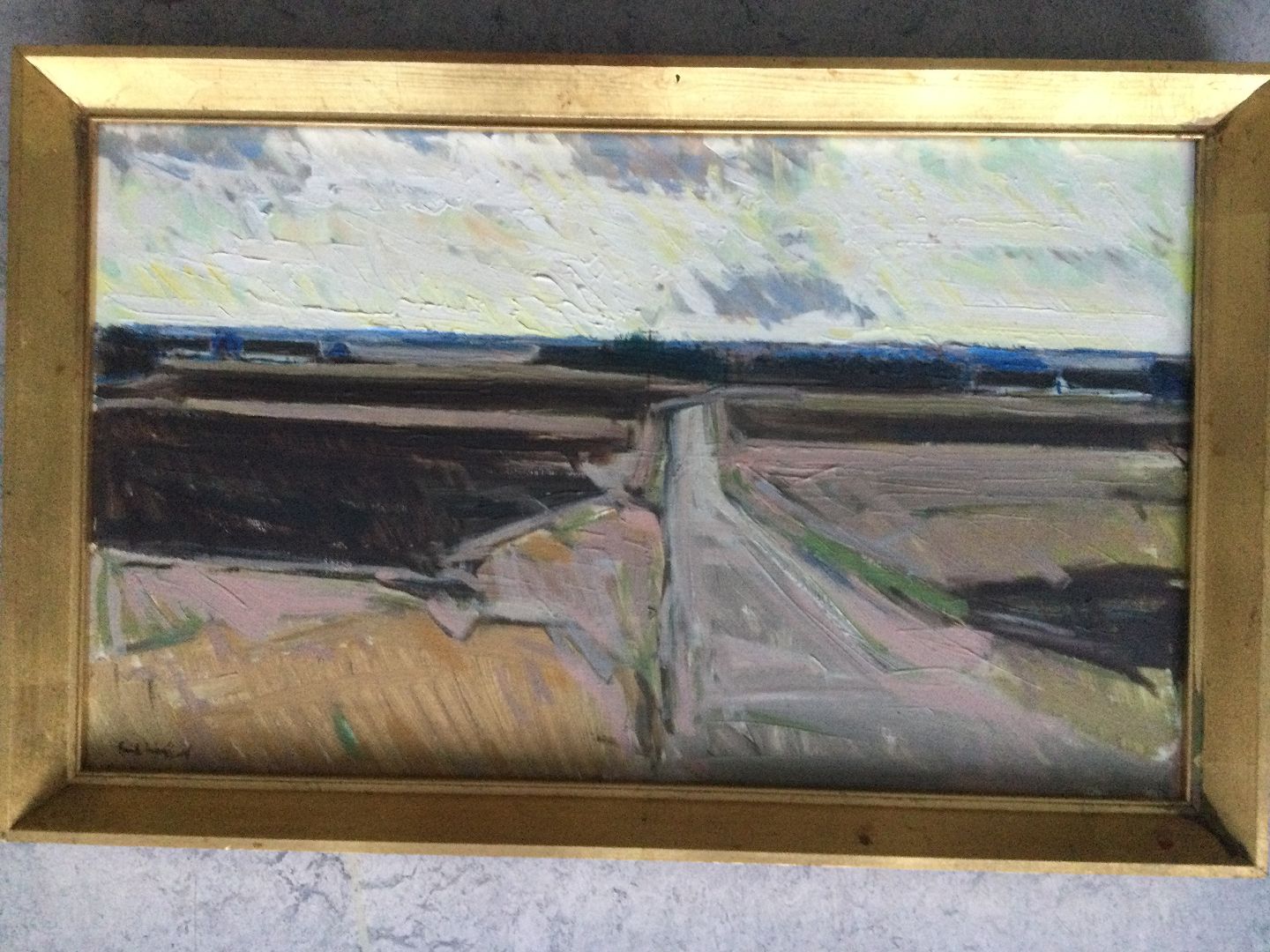 Maleri af Erik Nørgaard - Efterårsmarker ved Bjergby 1972.