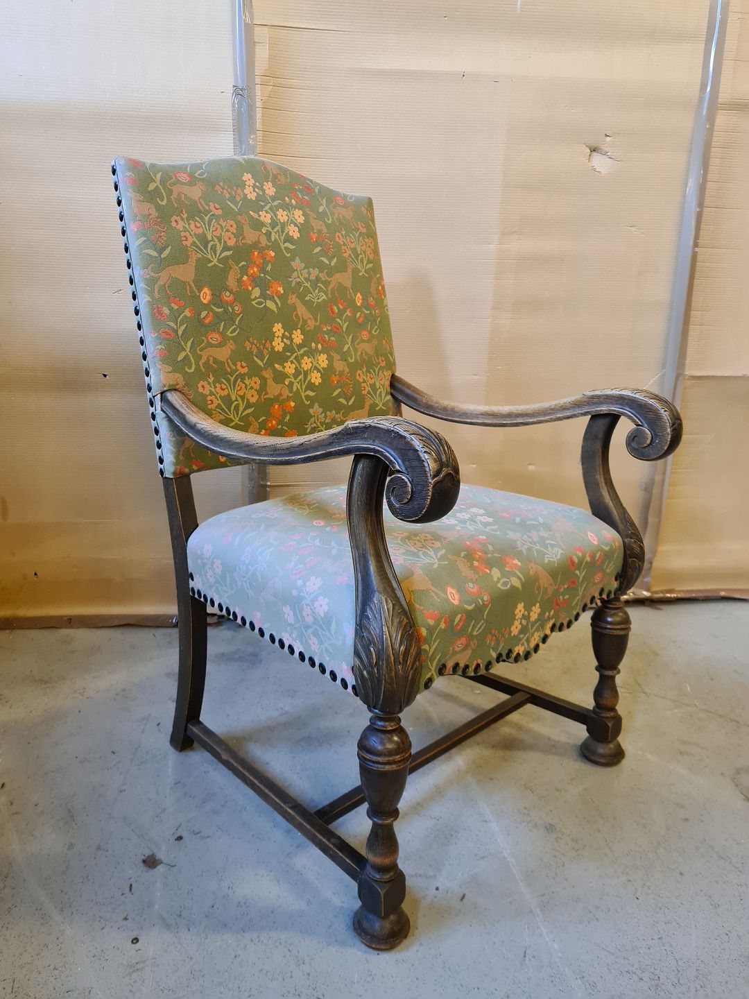 Armstol i bejset egetræ. fra 1930erne.