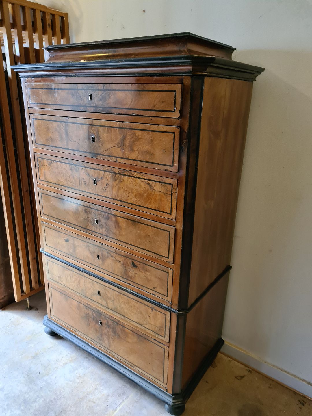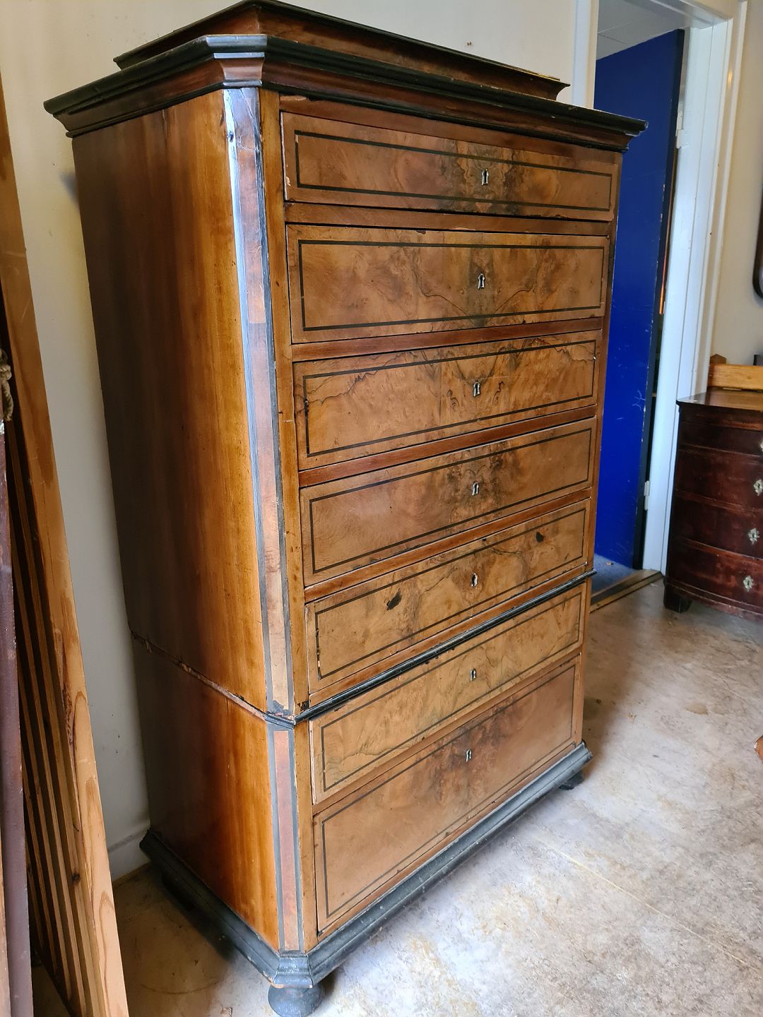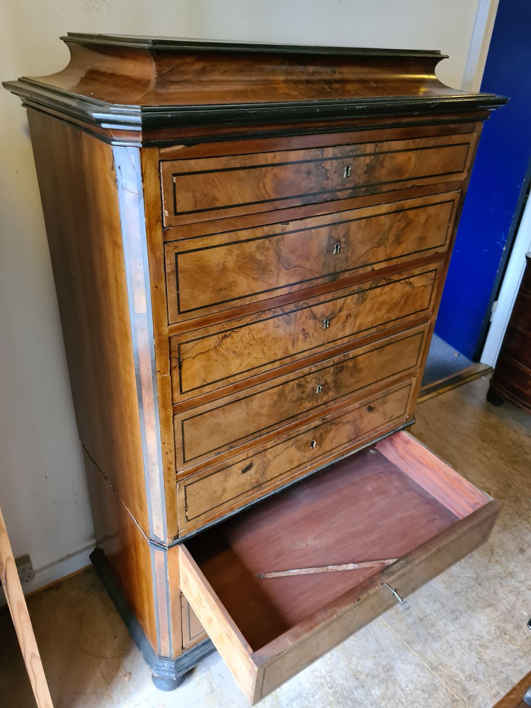 Stor kommode i fineret mahogni, fra 1890erne.
