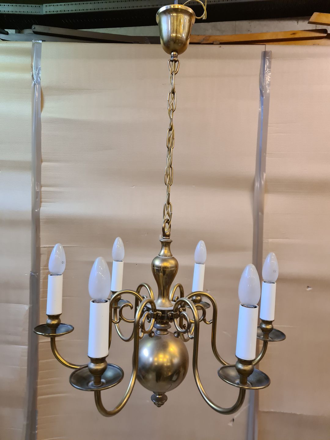 Kirkekrone med 6 arme i messing, fra 1930erne.