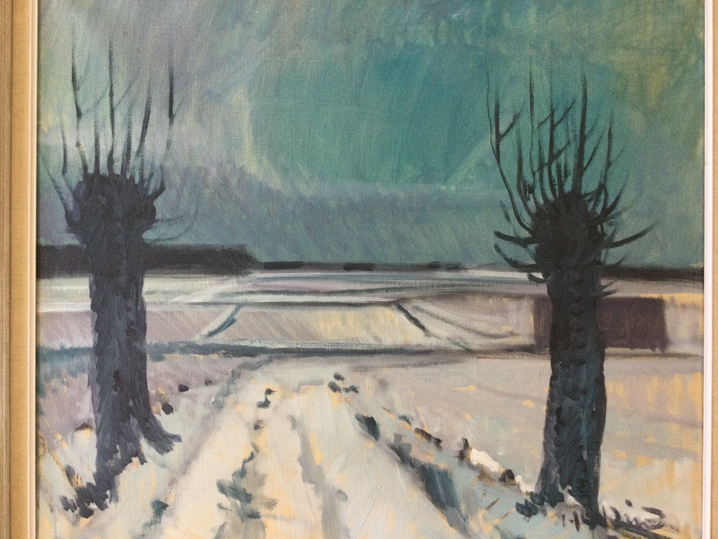 Maleri af Knud Horup - Vinterparti med vej og stynede træer.