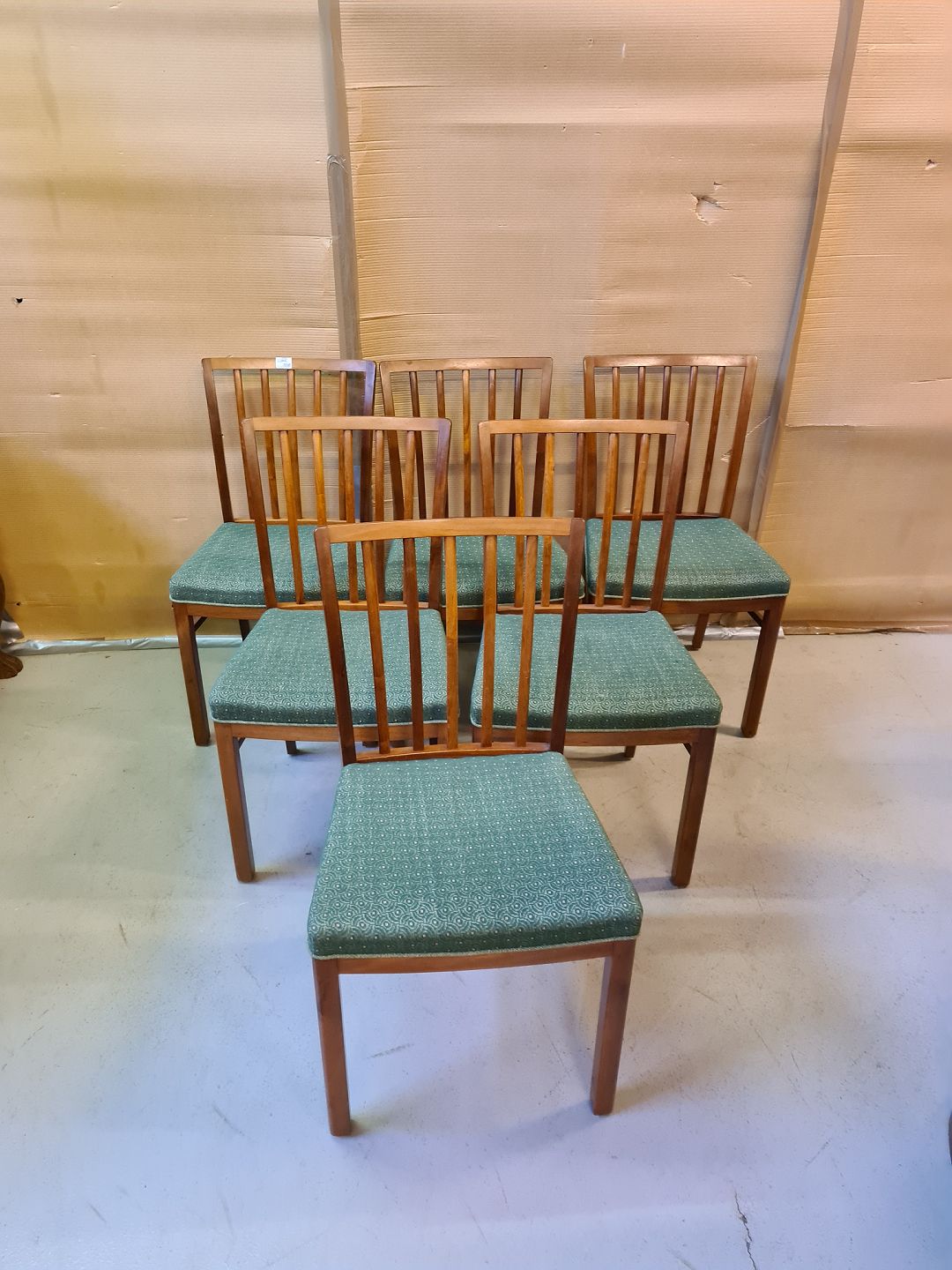 6 Stole i massivt mahogni, fra 1950erne.
