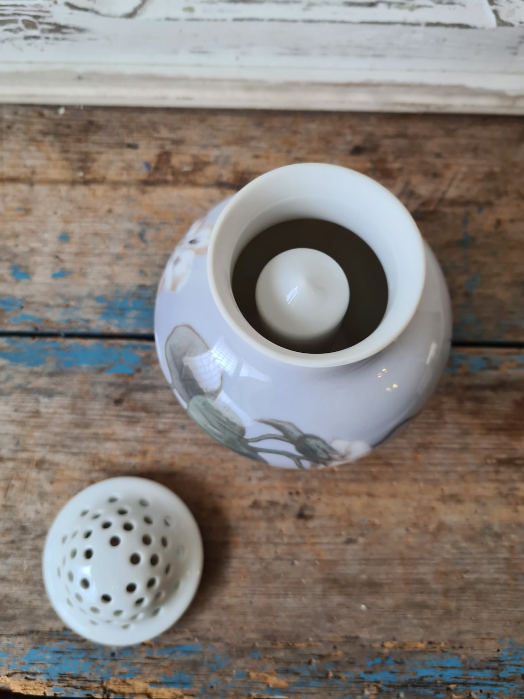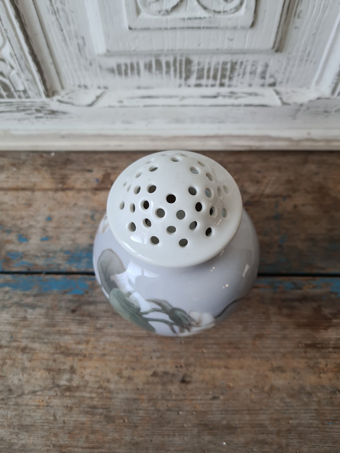 Royal Copenhagen Art Nouveau potpourri vase dekoreret med tallerkensmækker