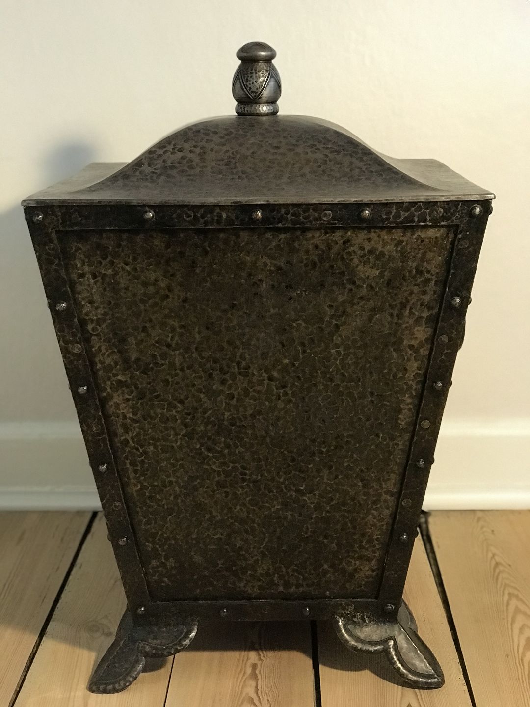 Stor skønvirke art deco koksspand kulspand m sidehanke mål b 46 d 46 h 69. Med skolvåbning. Meget tung.