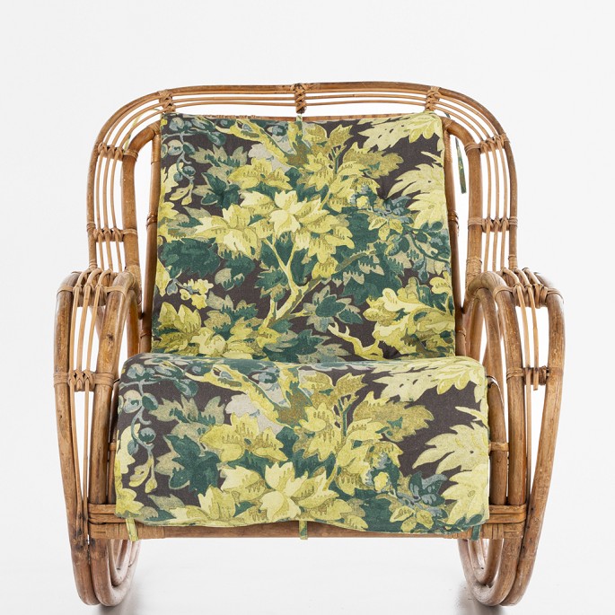 Rocking chair in bamboo with cushion in Fontainebleau (colour: Maronnier) by Pierre Frey.