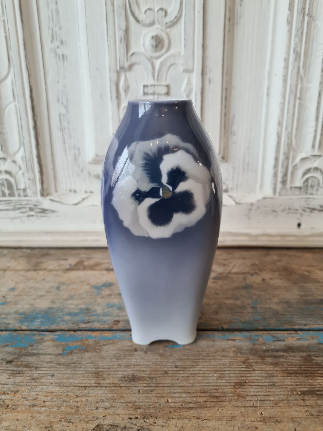 Royal Copenhagen Art Nouveau vase dekoreret med stedmoderblomster No. 900/240, 1. sortering