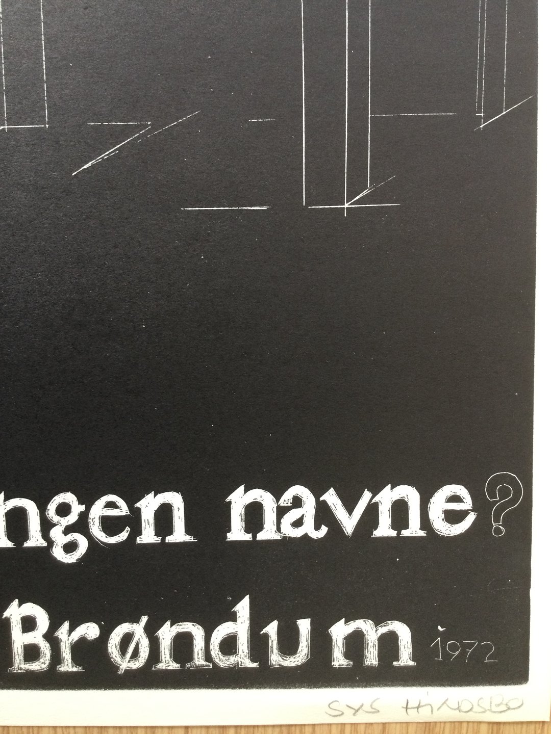 Træsnit af Sys Hindsbo - plakat for Göran Palms roman "Hvorfor har nætterne ingen navne?" 1972.
