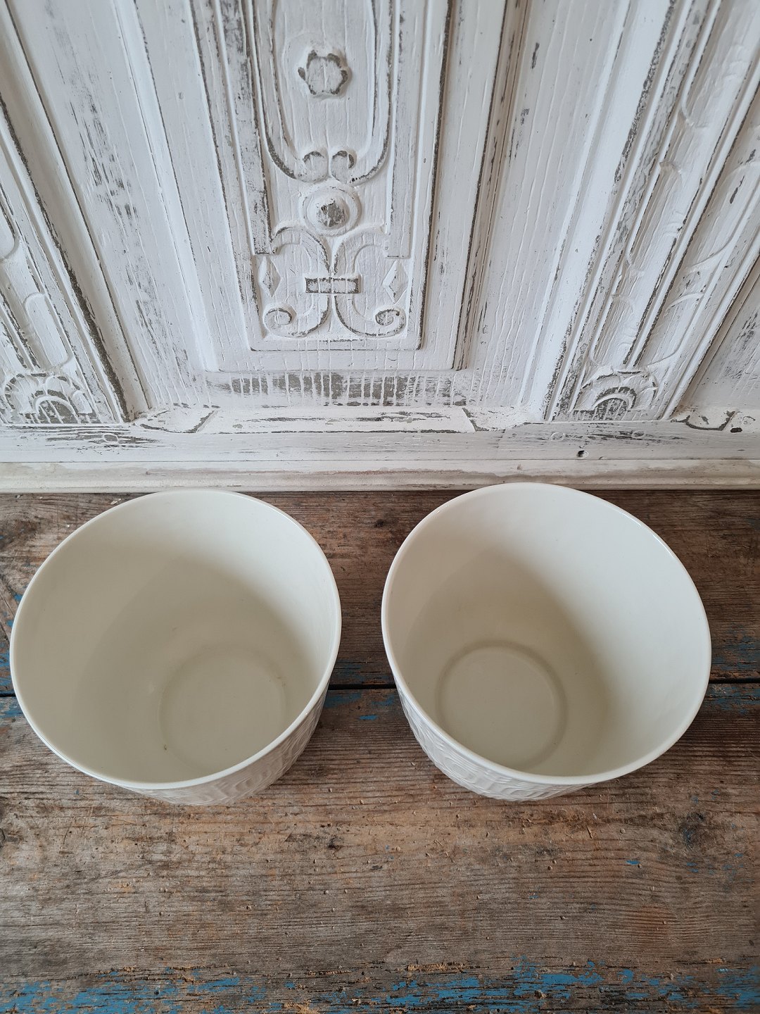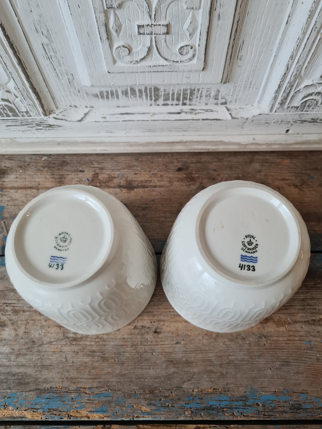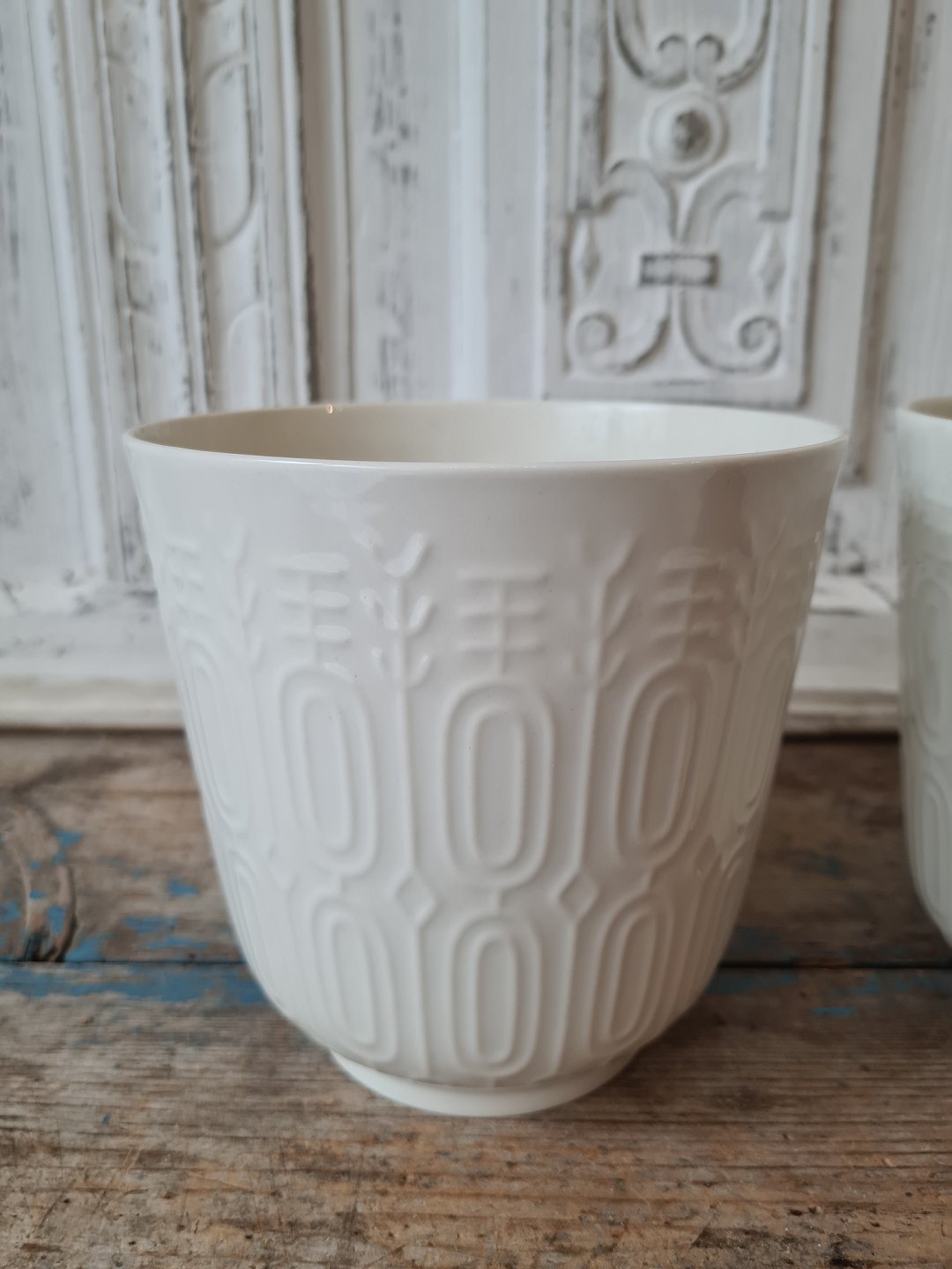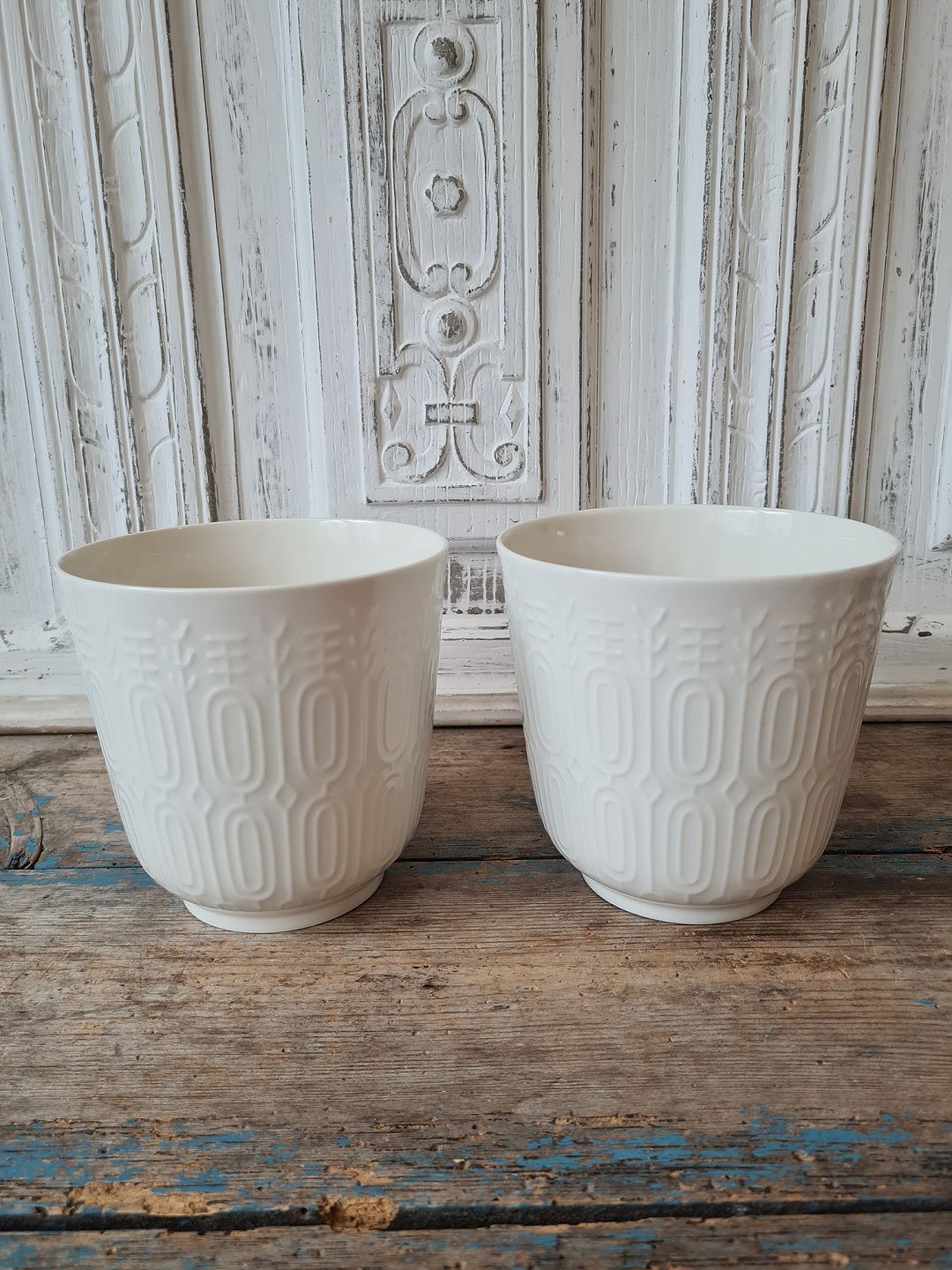 Royal Copenhagen pair of flower pots in Blanc de Chine decorated with geometric pattern in relief