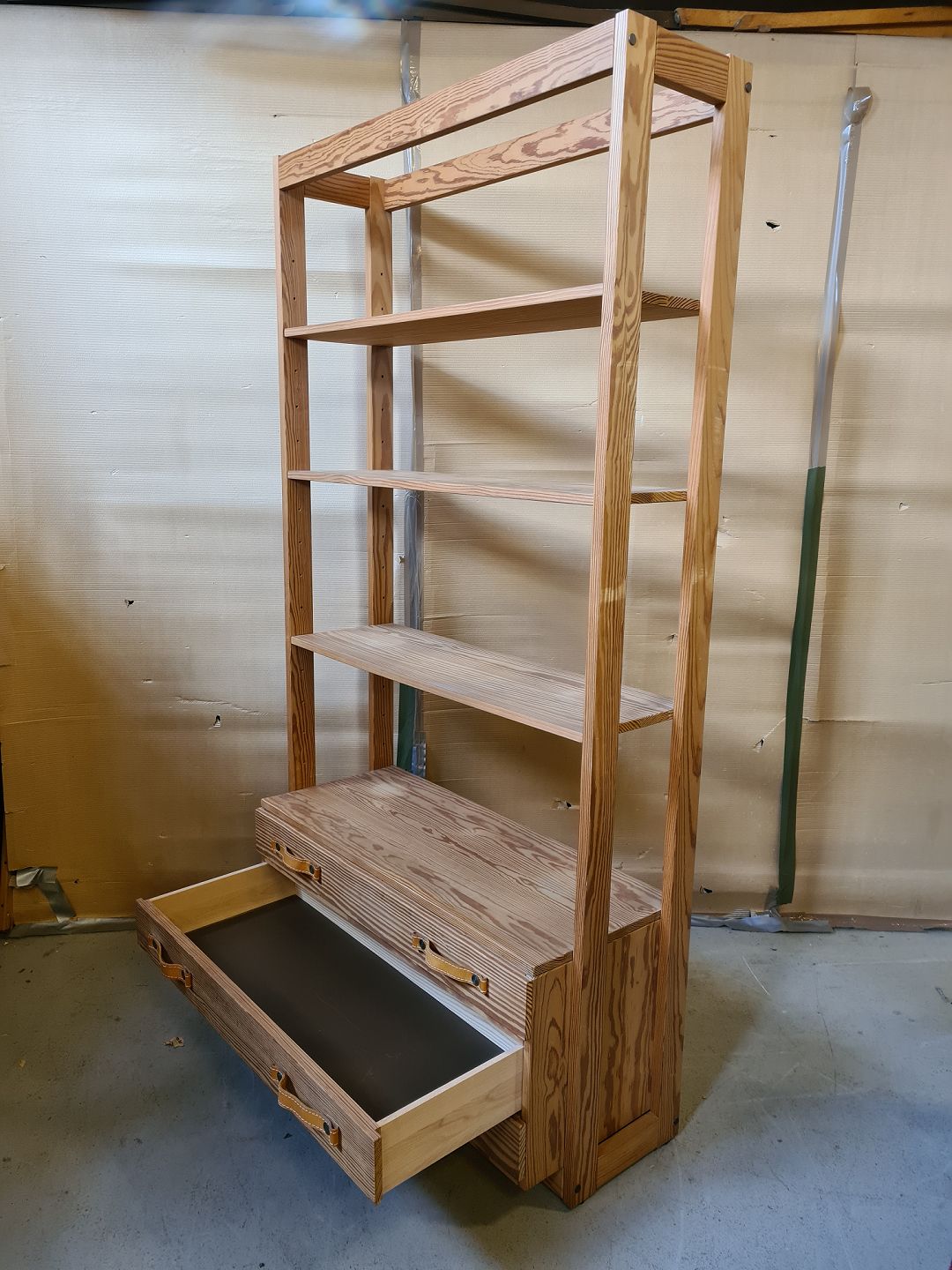 Reol i massivt amerikansk fyrretræ, fra 1970-1980erne.