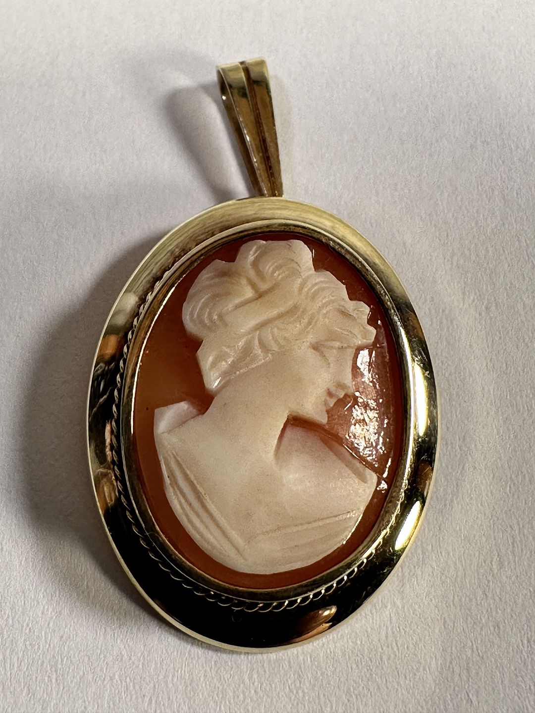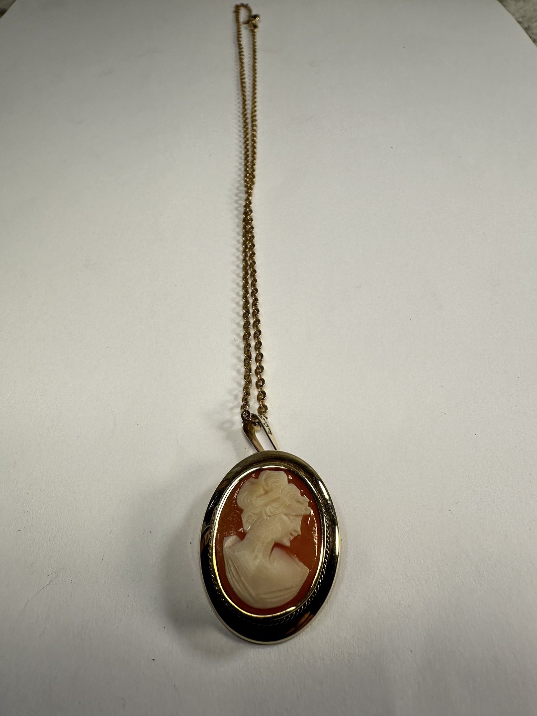 Came pendant. with chain. Gold 14k 585 Pendant length 3 cm, W 2.5 cm Chain l 36 cm