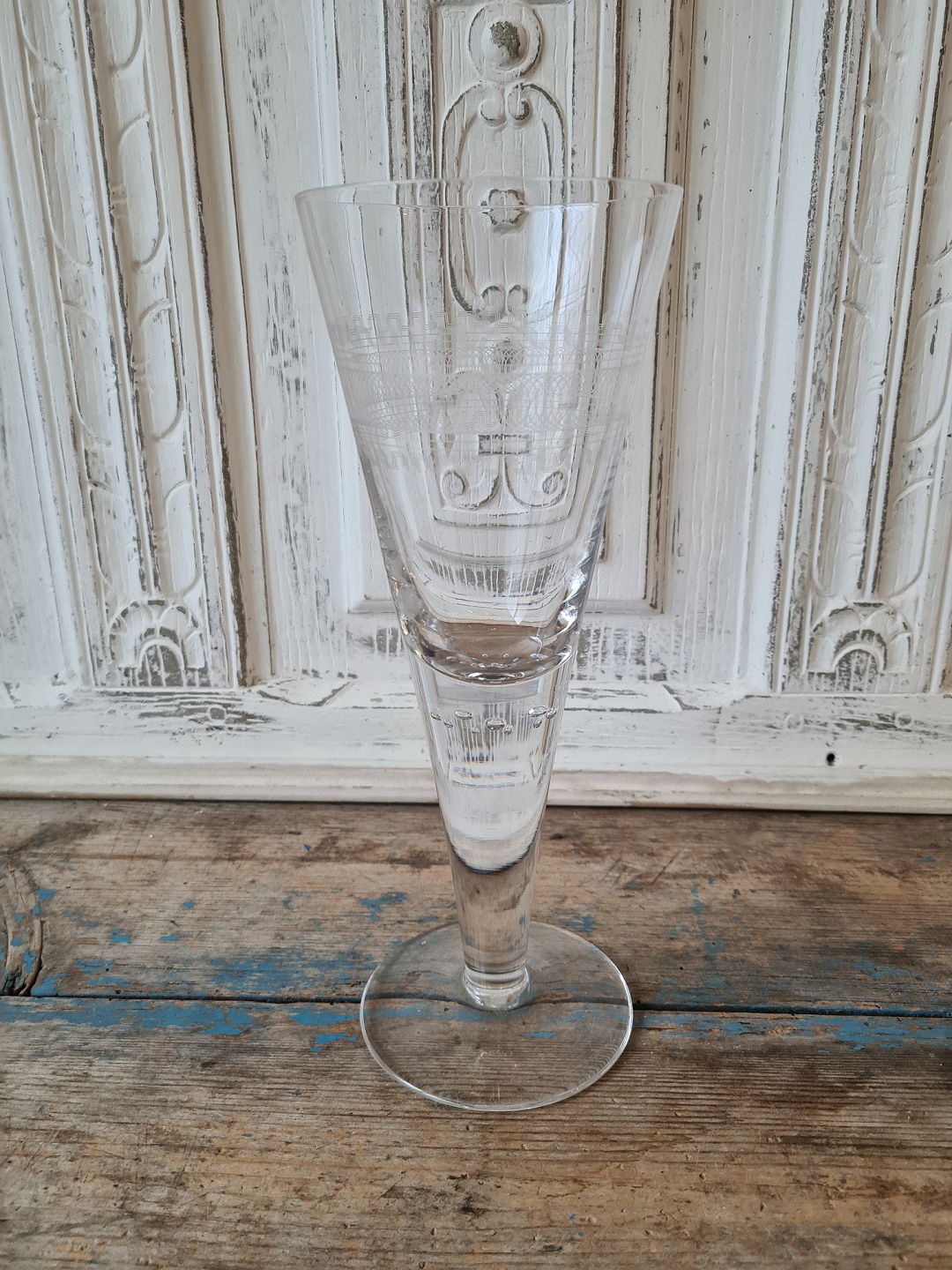 Goblet glass from Kastrup Glaswerk approx 1910 decorated with ground a la grecque.