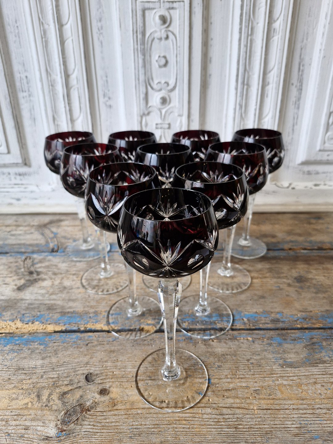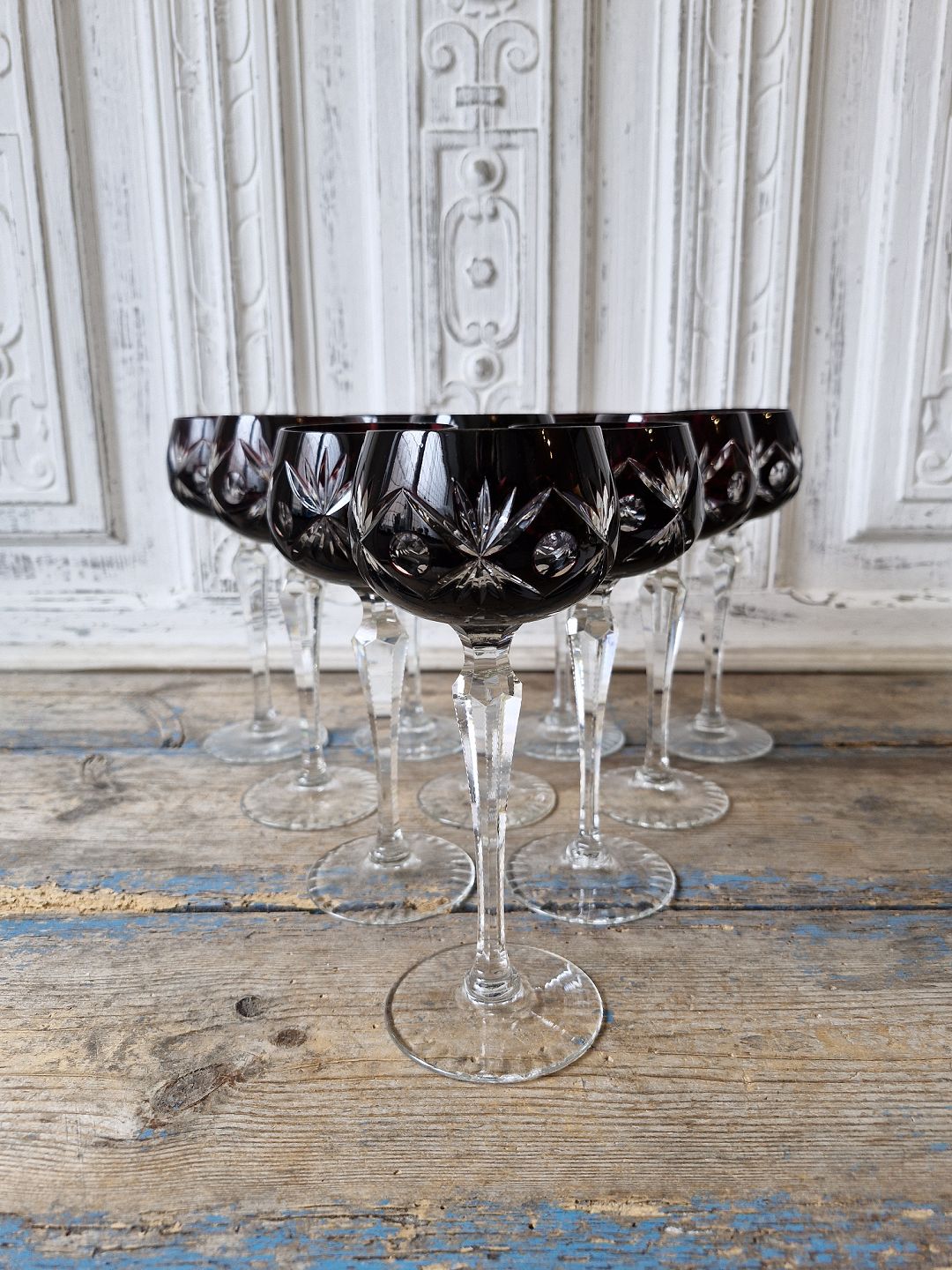 Rømerglas med auberginefarvet kumme