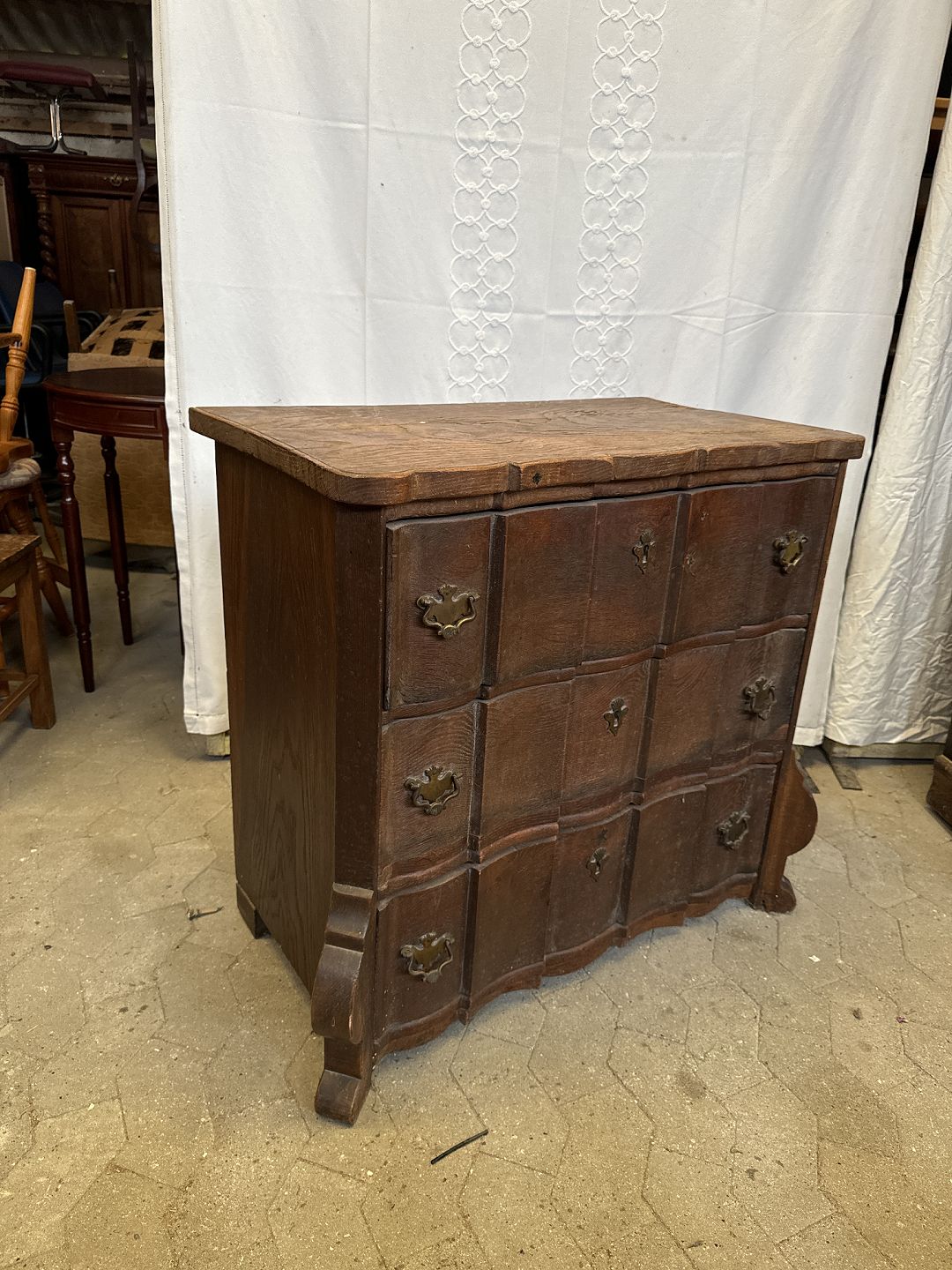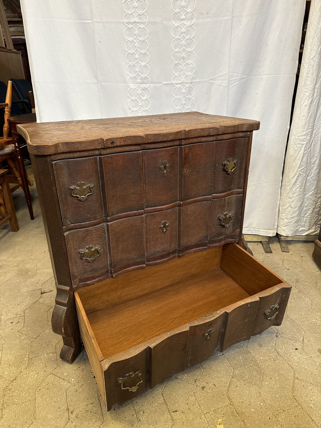 Kommode i massiv egetræ uden nøgle.
