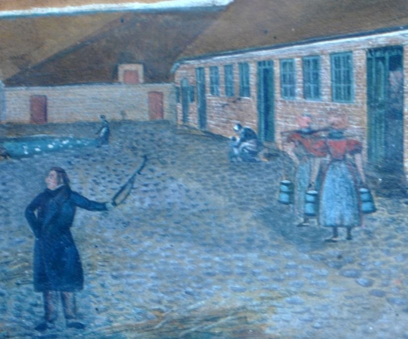 Danish artist (19th century): Prospect of Laue Jørgensen Frise's farm in Stubbum. 1841.
