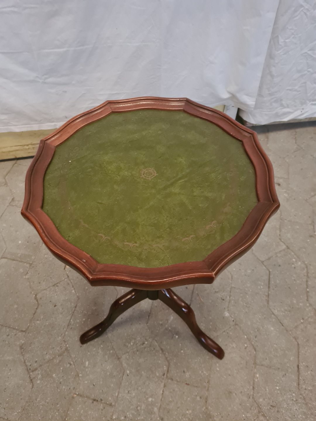 3 Små borde i bøgetræ med kunstlæder indlæg, fra 1990erne.