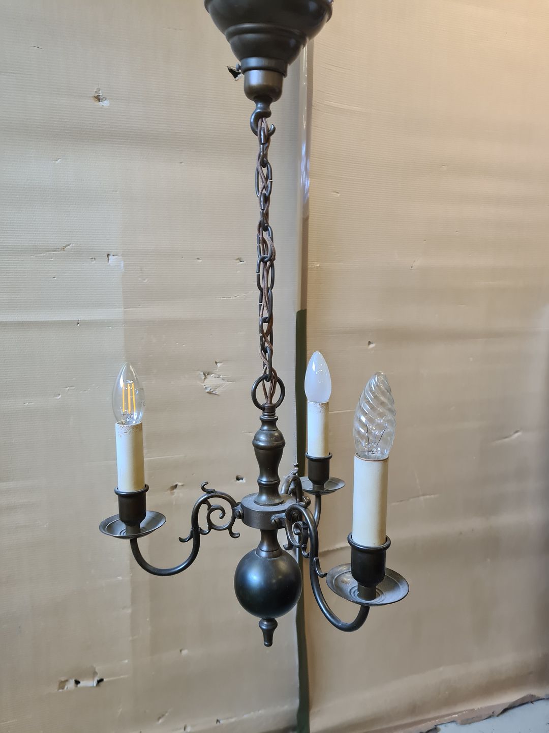 Kirkekrone med 3 arme i messing, fra 1930erne.