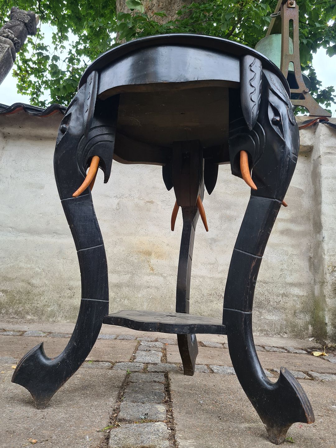 Sortlakeret lampebord fra 50' erne med elefant profiler som ben. Fremstår pænt og helt dog let vakkelvornt.