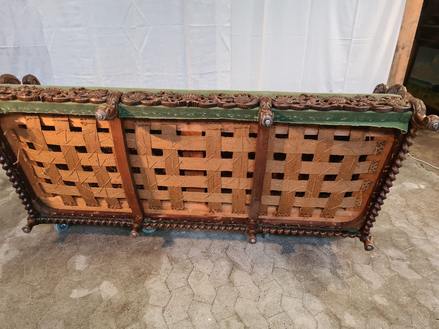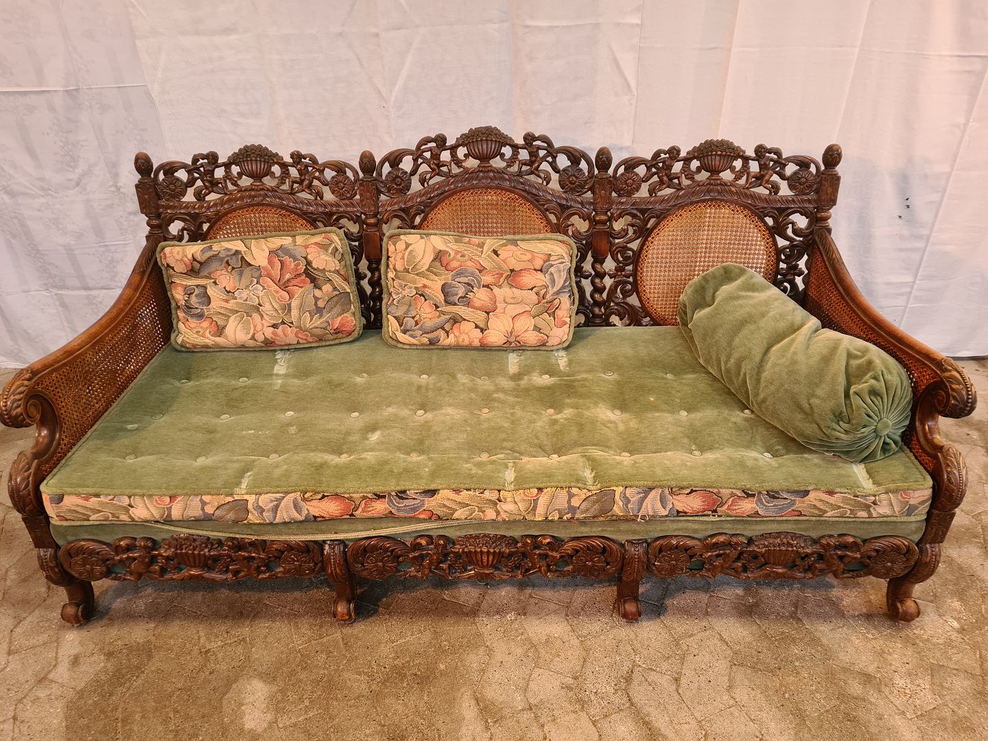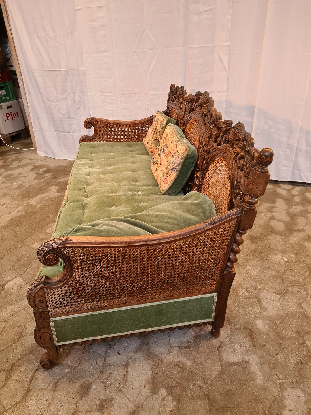 Sofa med 2 lænestole i massivt egetræ og rørflet, fra 1930erne.